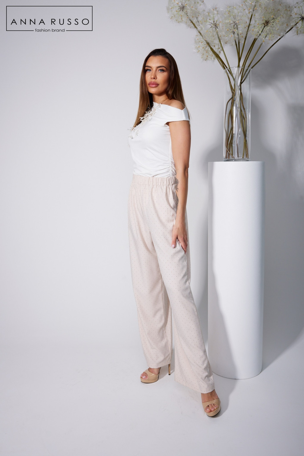 Anna Russo Zaya swarovski köves nadrág, bézs