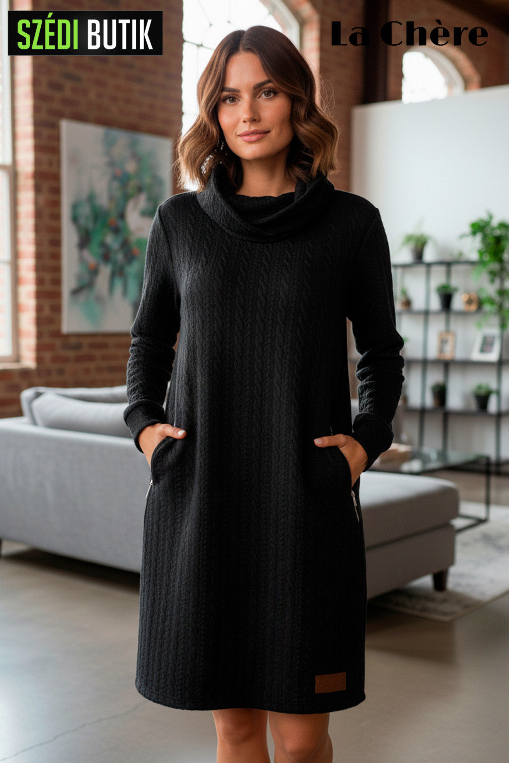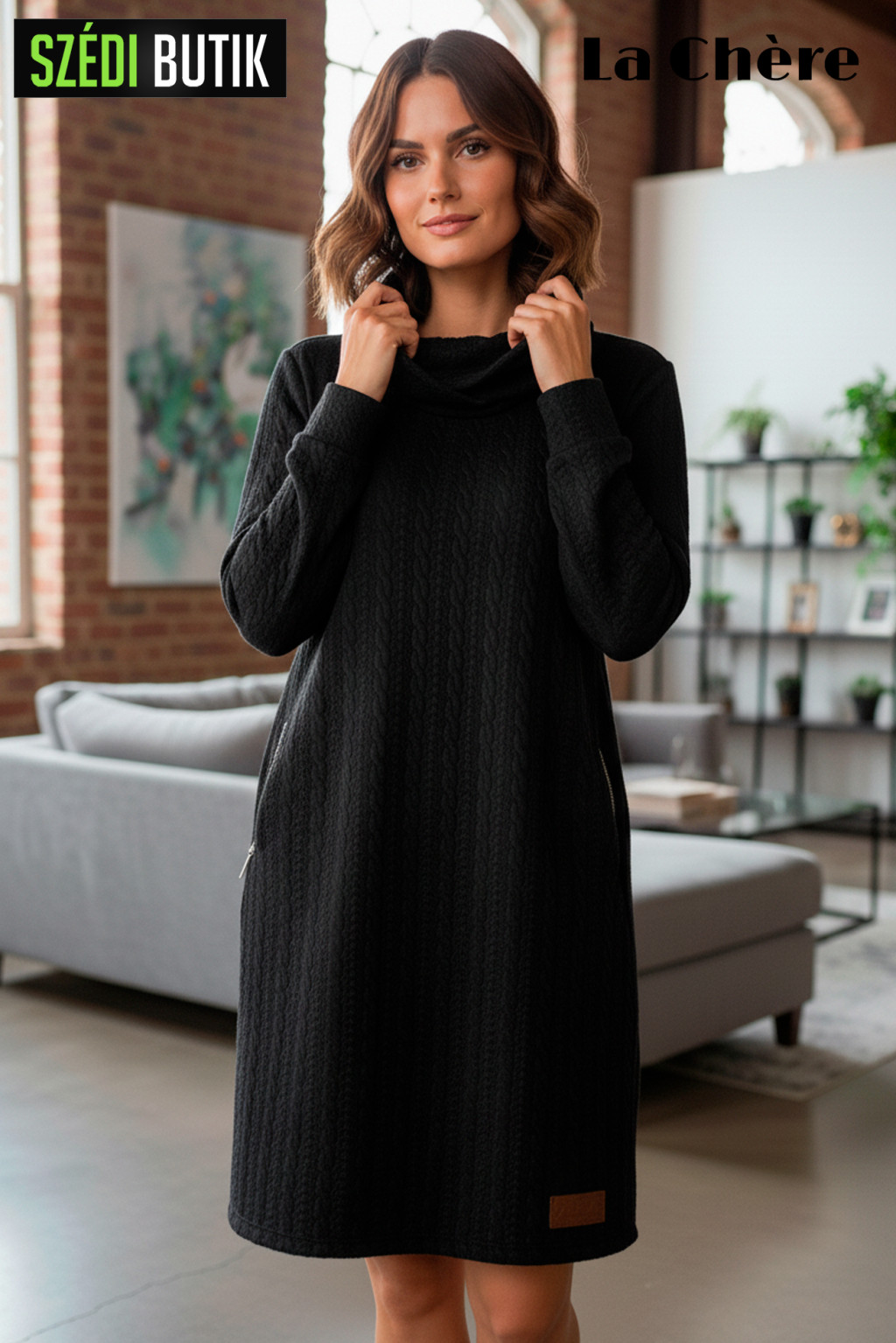 La Chére Larissa kötött anyagában mintás pulóver, fekete