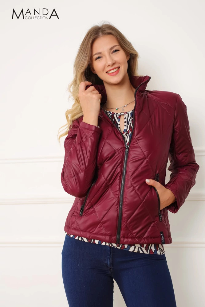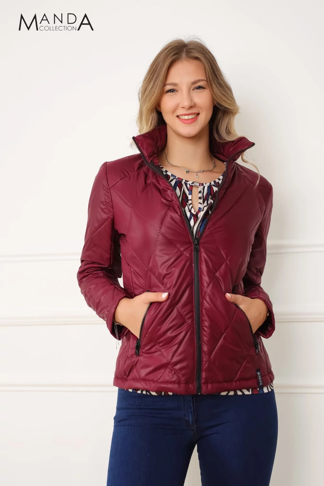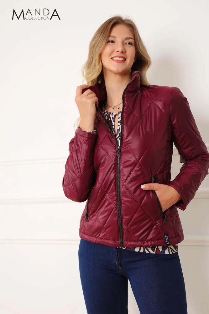 Karcsúsított fazonú, steppelt, zsebes kabát.