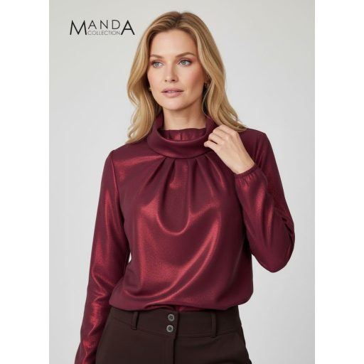 Csillogós anyagból készült kámzsa nyakú, gumis derekú és ujjú, alkalmi felső