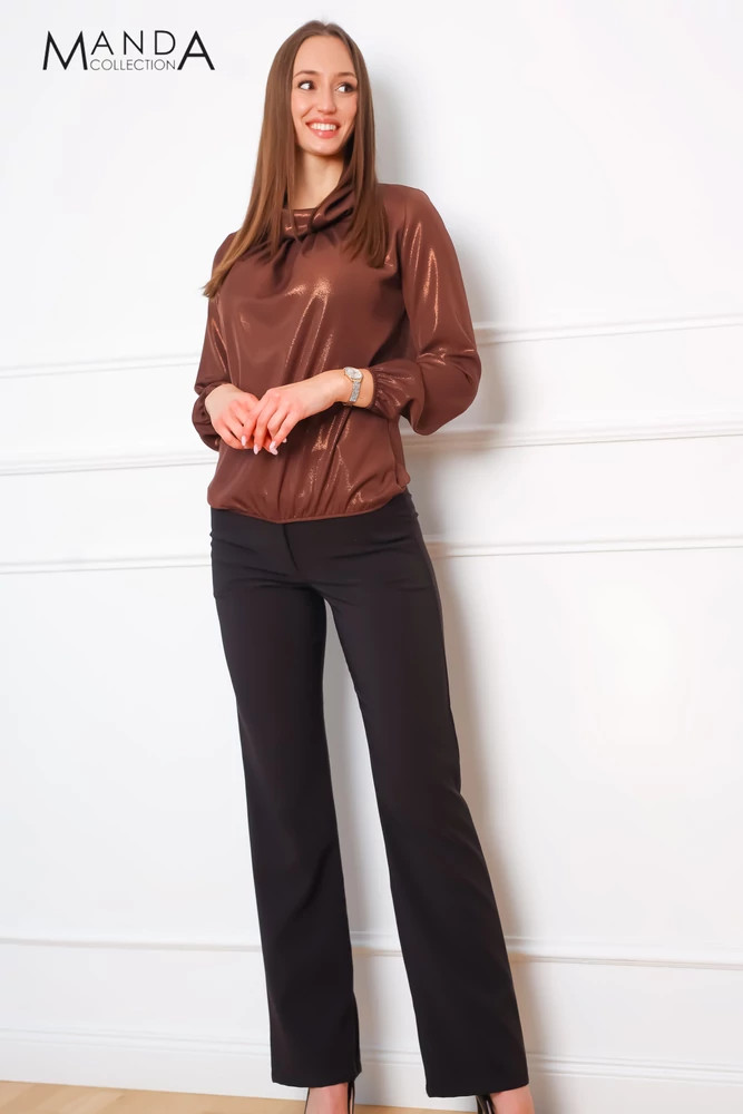 Manda kámzsa nyakú felső, csokibarna