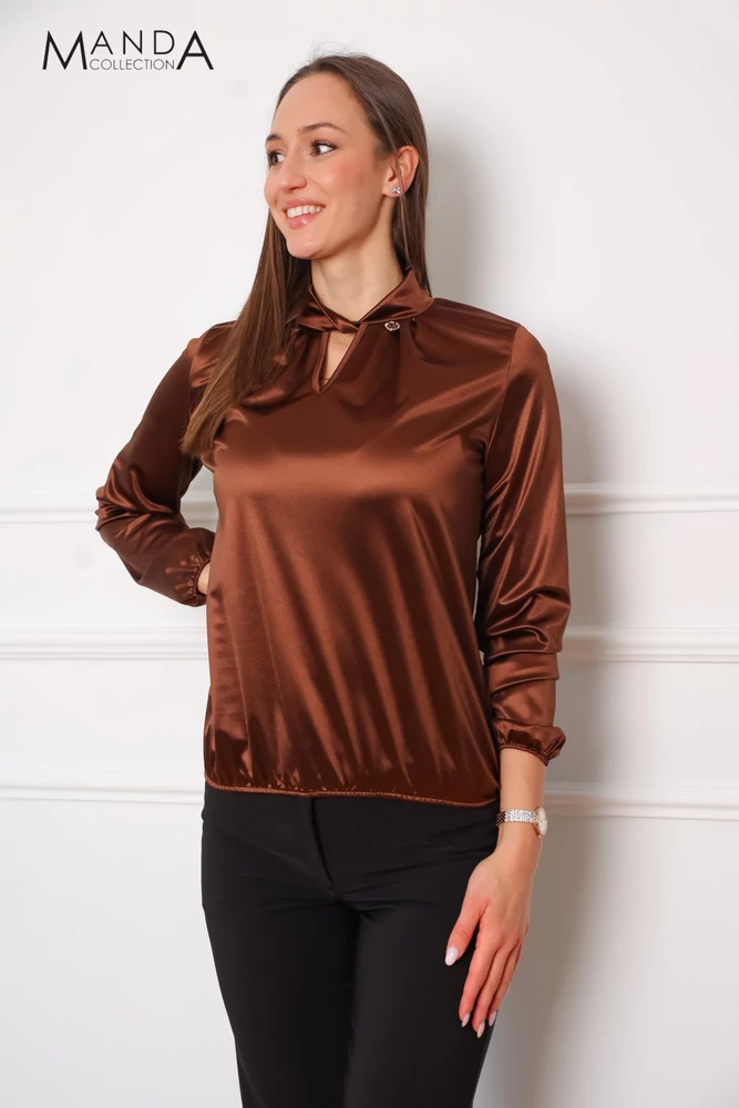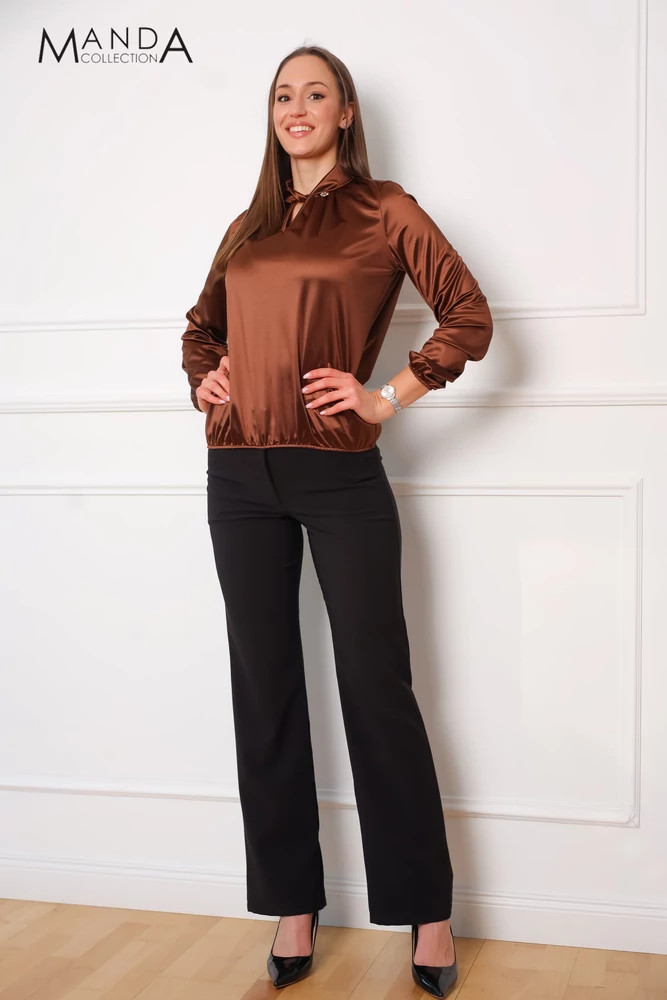 Fényes vastag szatén anyagból készült gumis derekú és hosszú ujjú, alkalmi felső