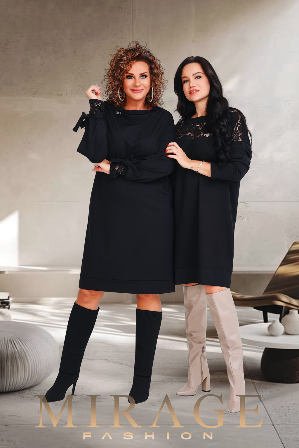 Mirage Antigoné csipkebetétes pulóver, fekete