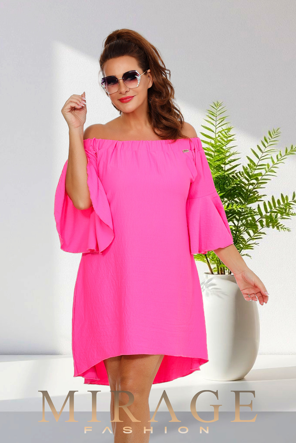Mirage Árven tölcsér ujjú ruha, neon pink