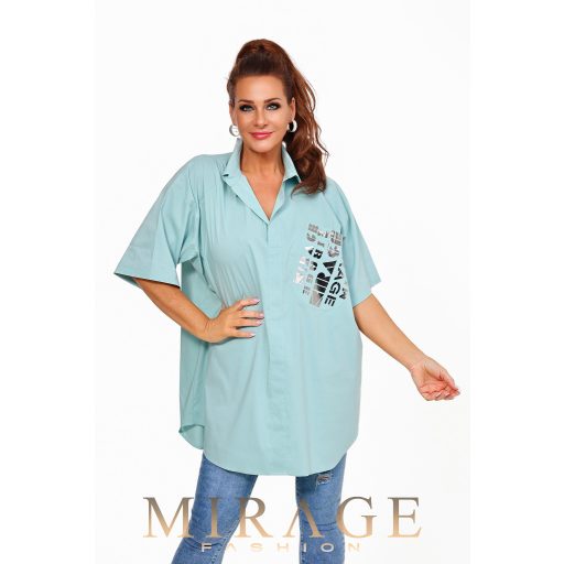 Puplin (ing) anyagból készült, galléros, zsebnél nyomatos, bő ingtunika.