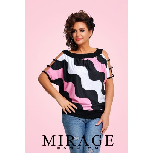 Elől mintás mikró, hátul egyszín pamut viszkóz anyagból készült rollnis pántos, alul passzés, bő felső.