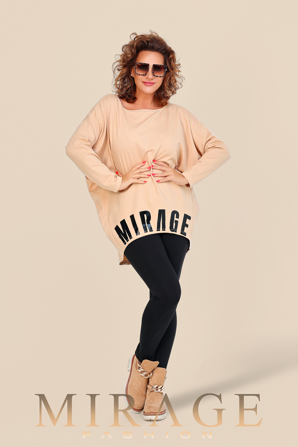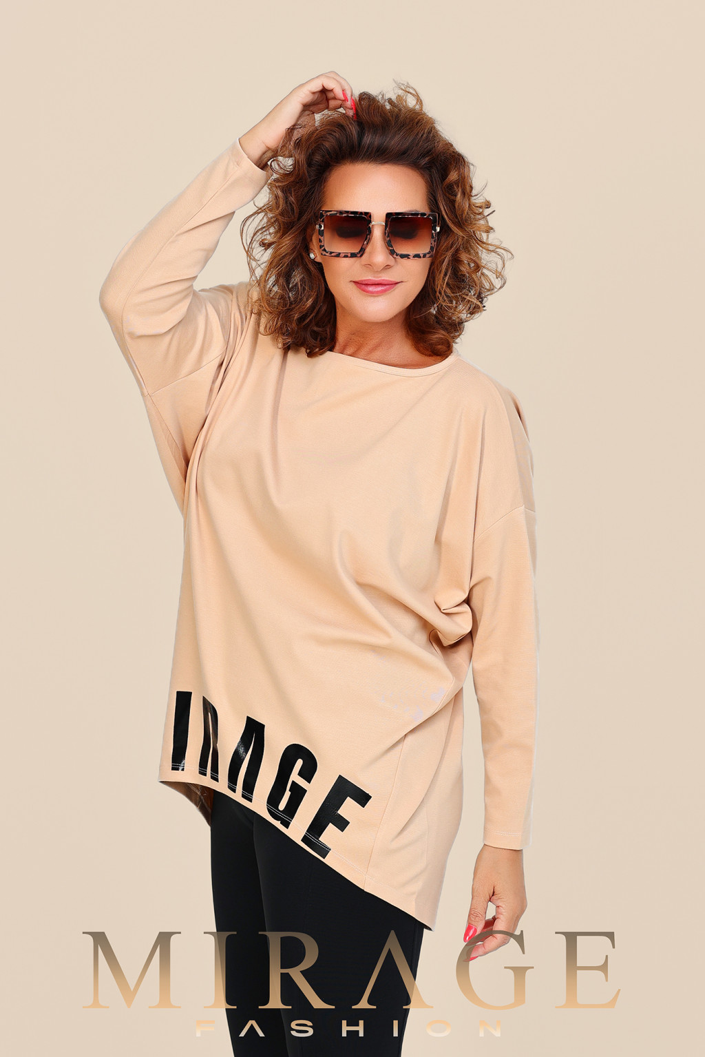 Vastag puntó anyagból készült, elől rövidebb, hátul hosszabb fazonú pulcsi tunika.