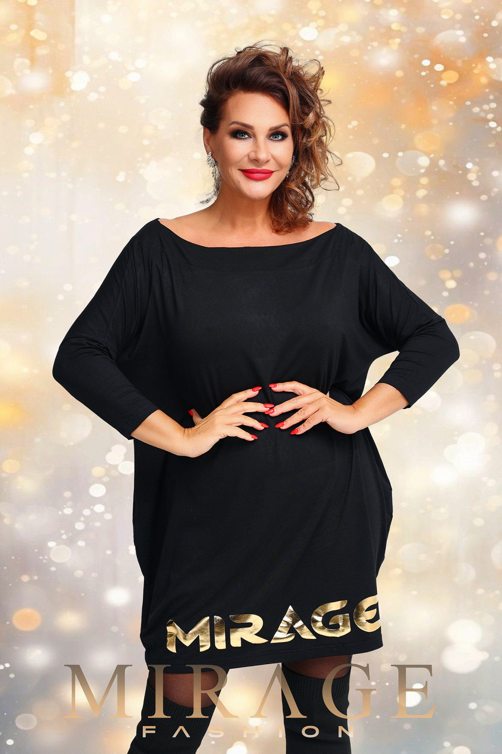Pamut viszkózból készült csónaknyakú, enyhén hagyma fazonú ruha.