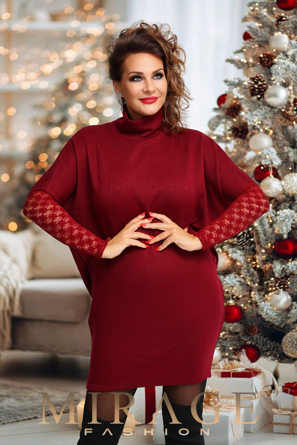 Mirage Bistrica vastag kötött garbós pulóver, bordó