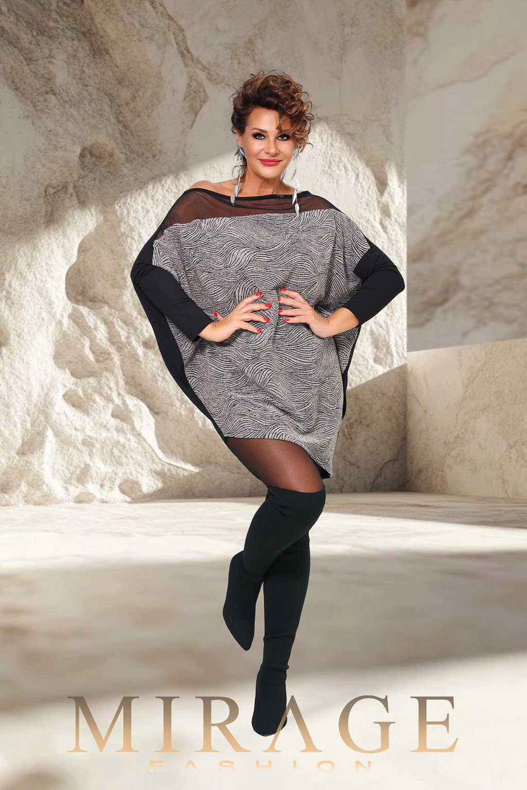 Csónyaknyakú tunika, necc betéttel nyakrésznél.