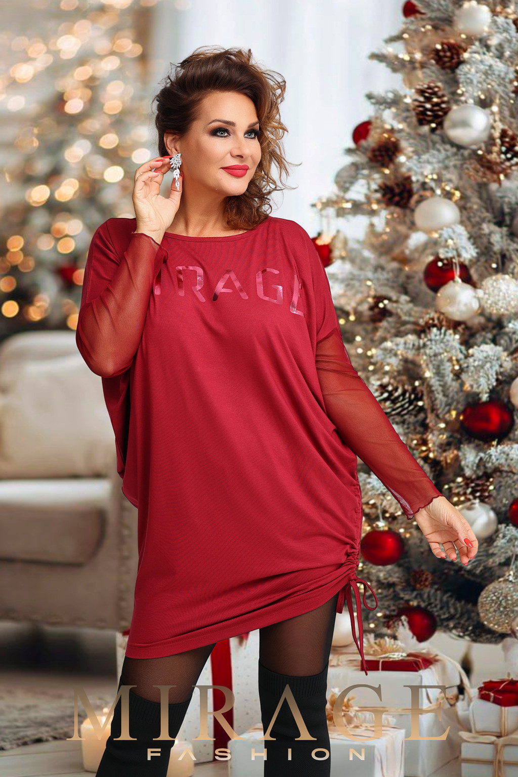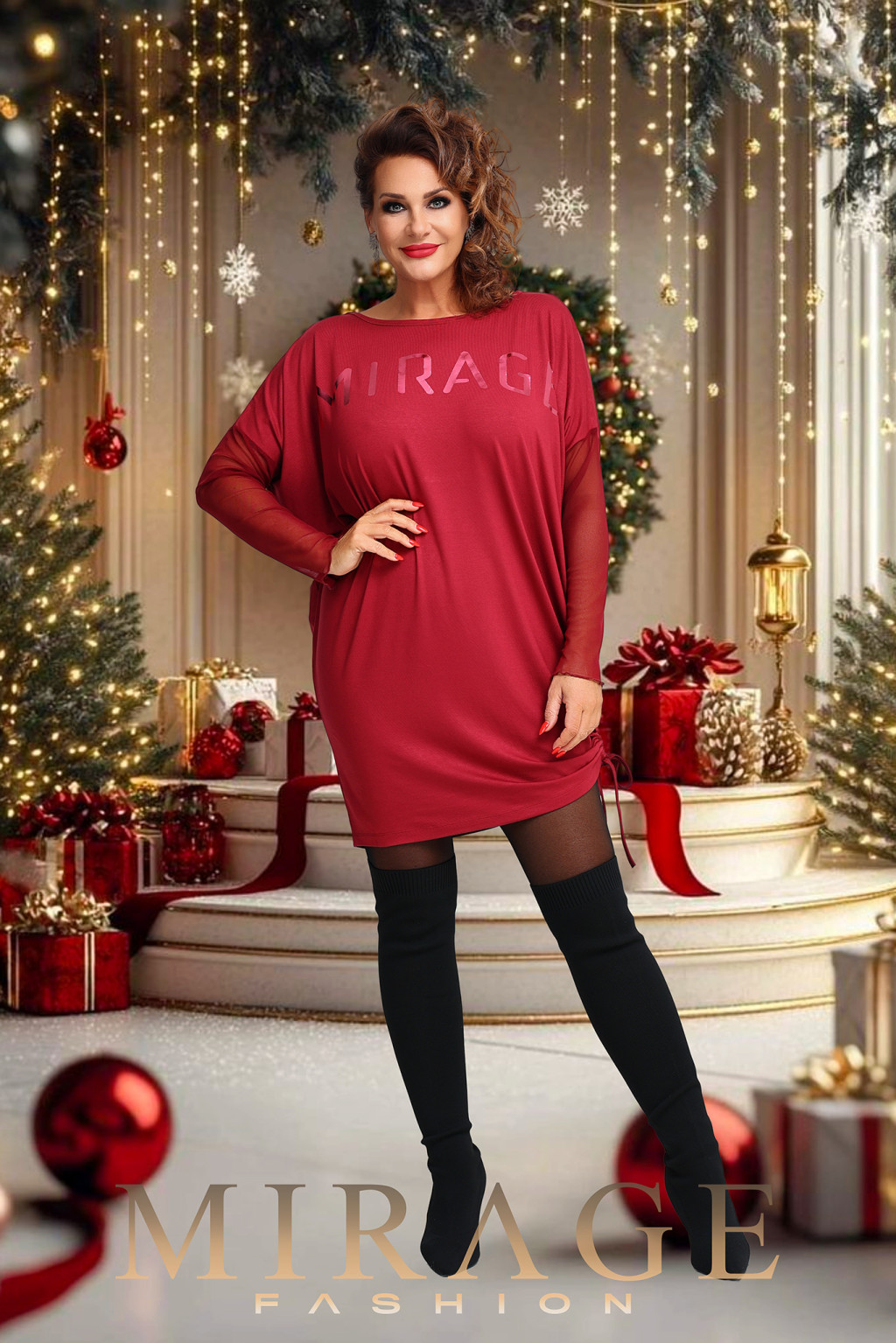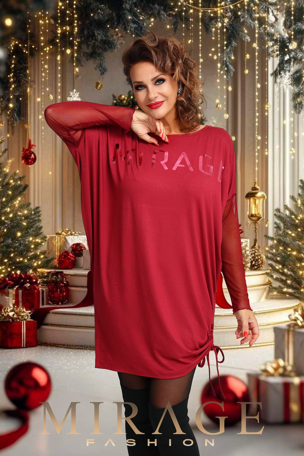 Pamut viszkózból készült, mellnél bordó Mirage feliratos, necc ujjú, alkalmi tunika.