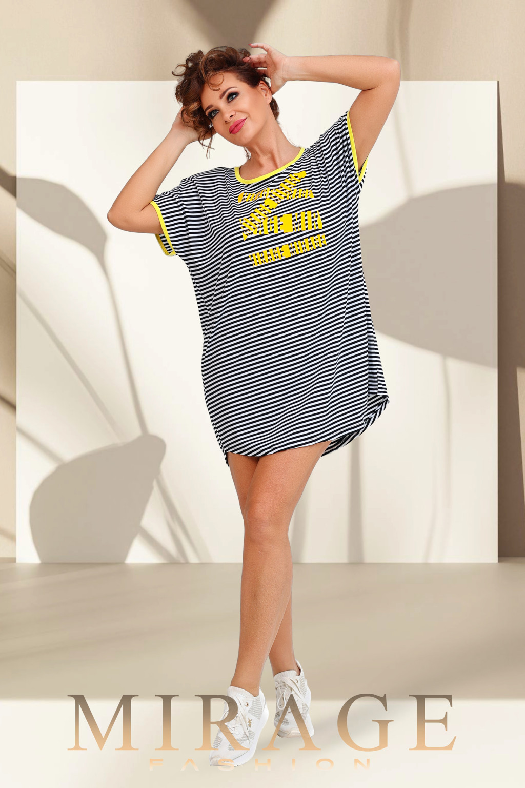 Keresztbe csíkos anyagból készült, bő, egyenes szabású tunika.