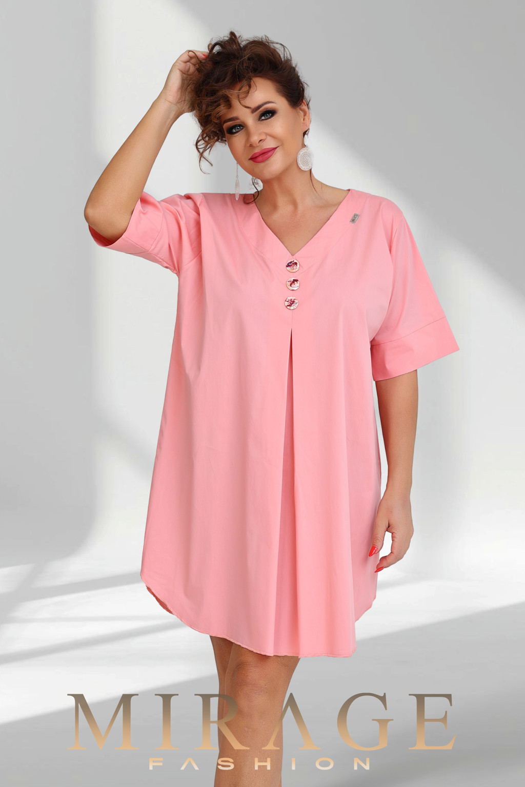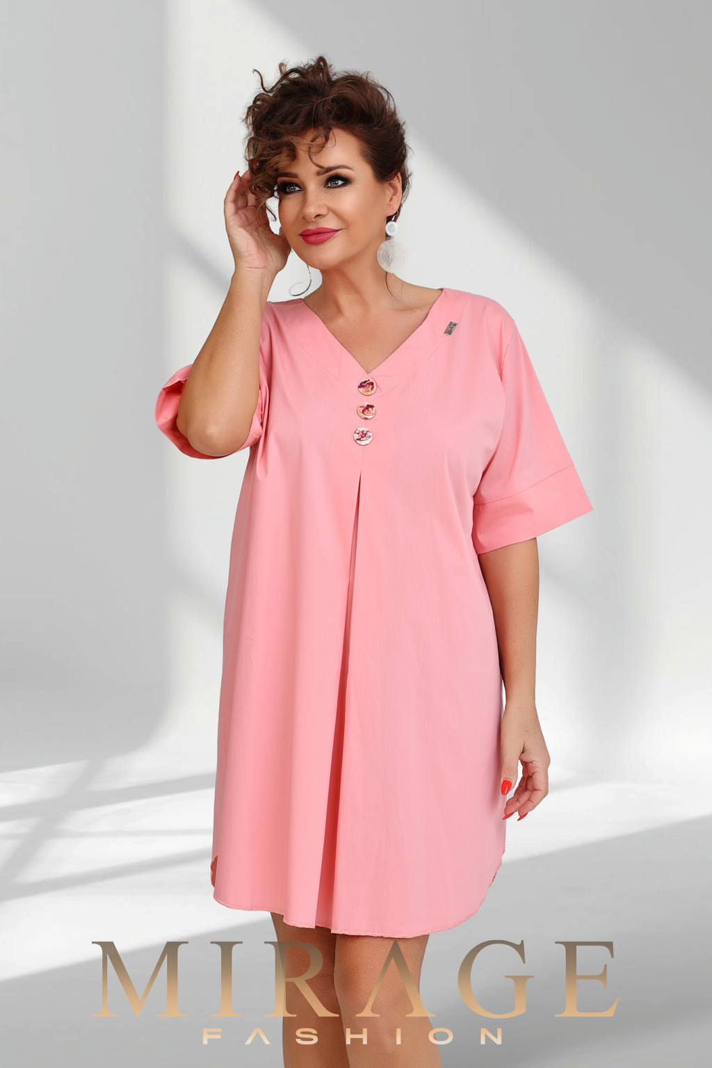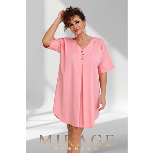 Puplin (ing) anyagból készült V nyakú, rövid ujjú ingruha.