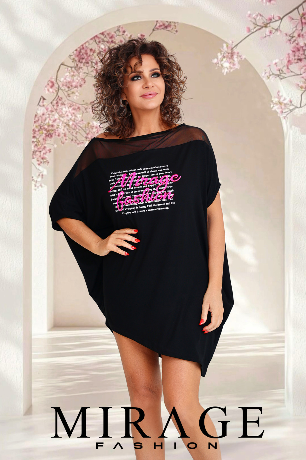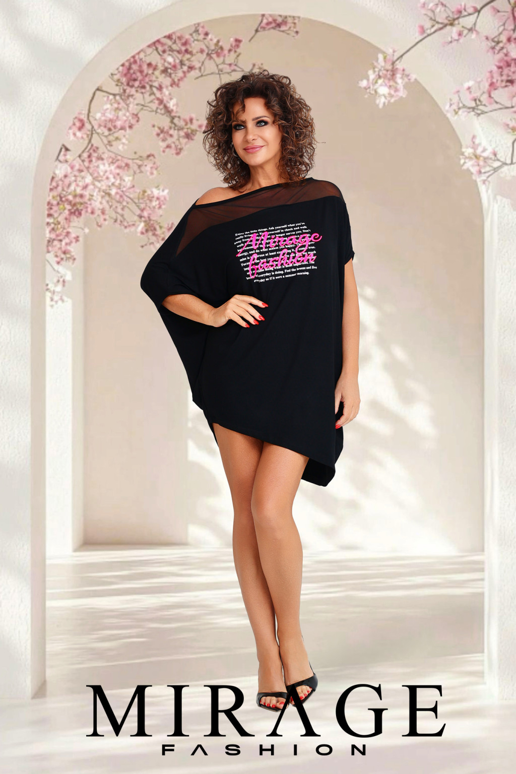 Pamut viszkózból készült, csónyaknyakú tunika, nyakrésznél neccbetétes.