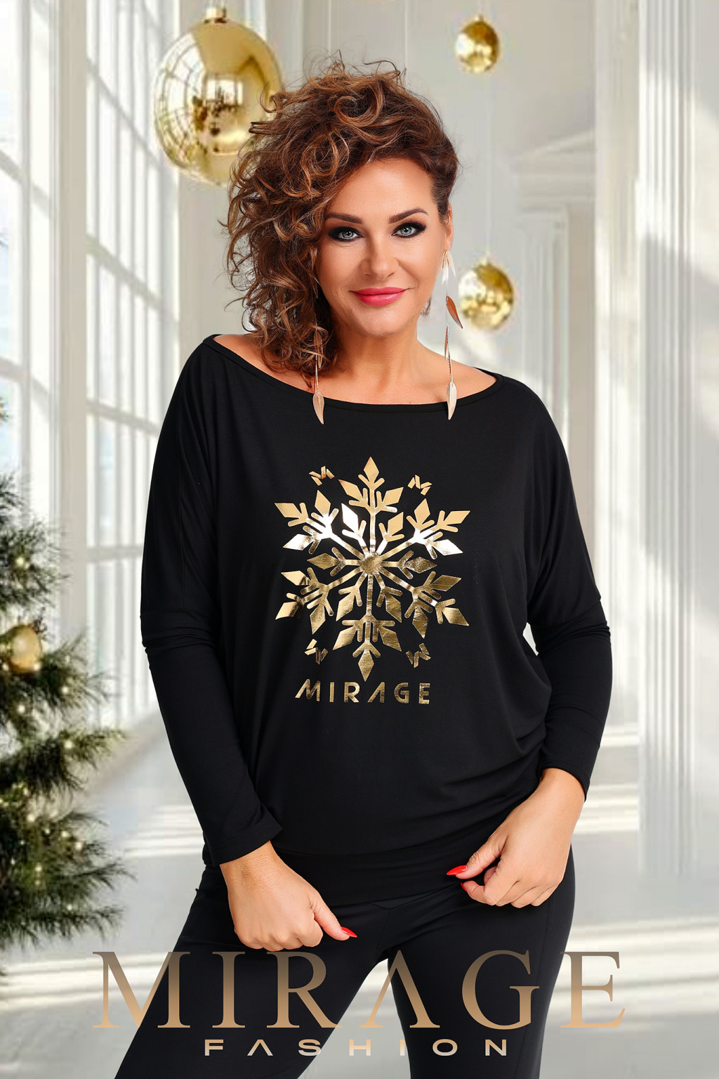 Pamut viszkózból készült, alul passzés, mellnél arany hópehely nyomatos felső.