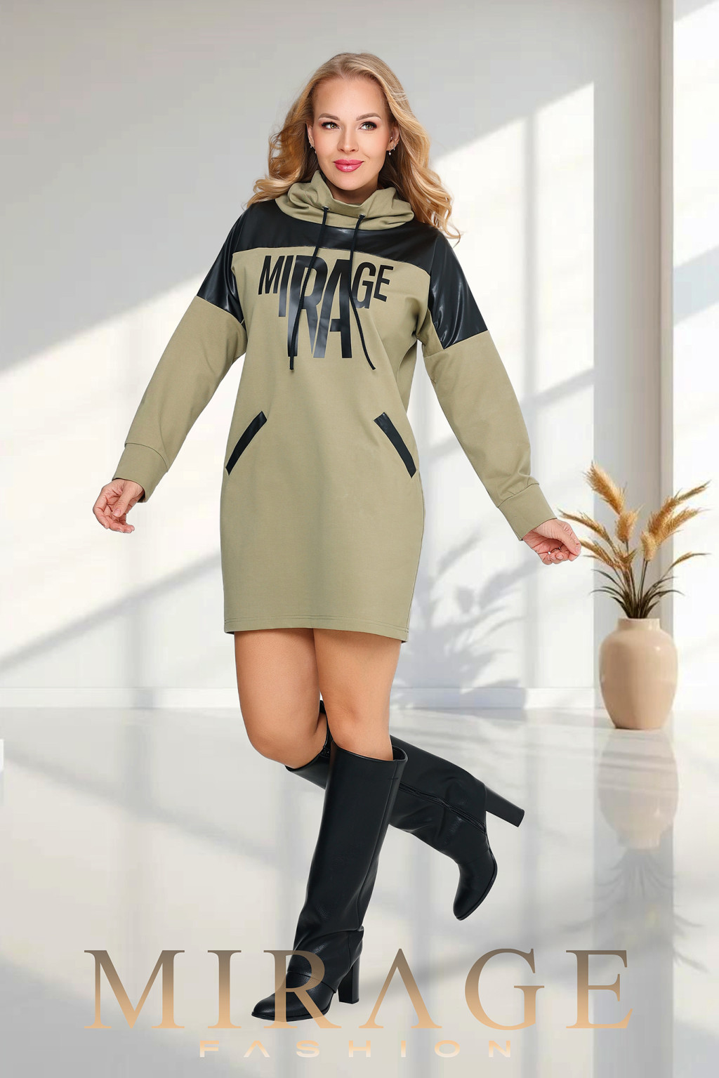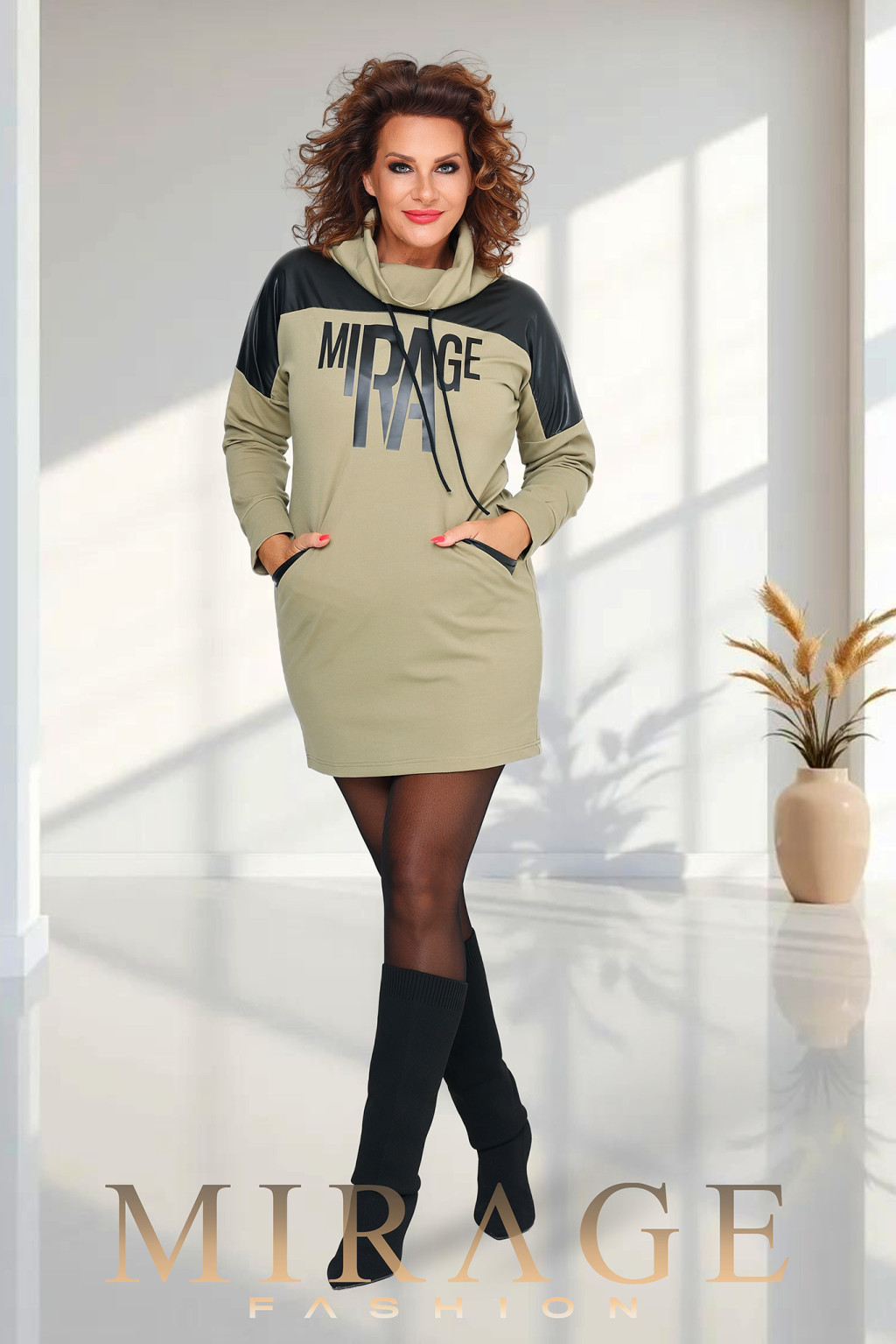 Mirage Jennefer bőrbetétes pulóver, világos kheki