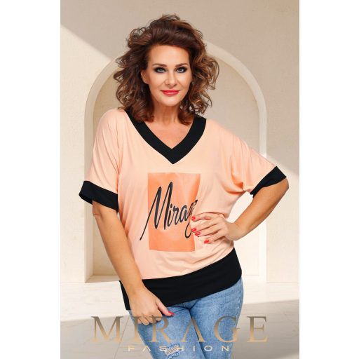 Pamut viszkózból készült alul passzés, V nyakú, nyomatos felső.