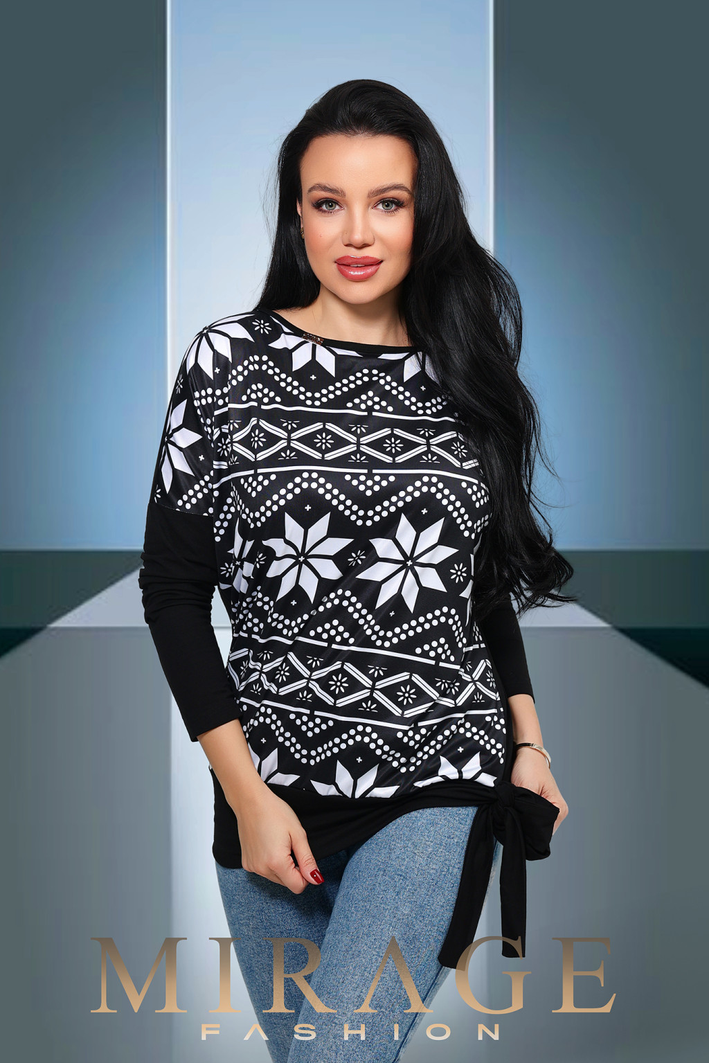 Elől mintás, hátul egyszín fekete pamut viszkózból oldalán kötős felső.