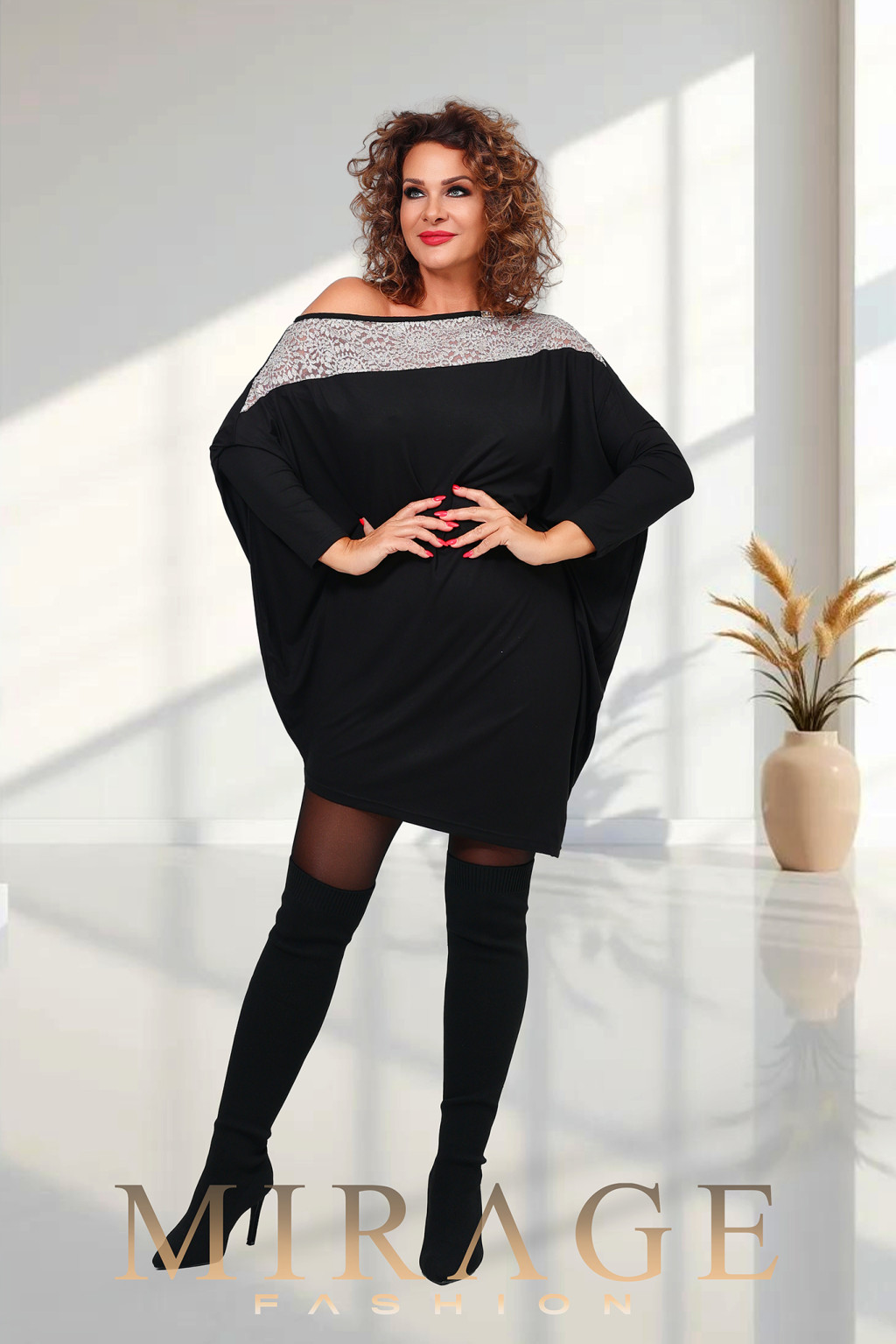 Mirage Kimberly csipkebetétes alkalmi tunika, fekete