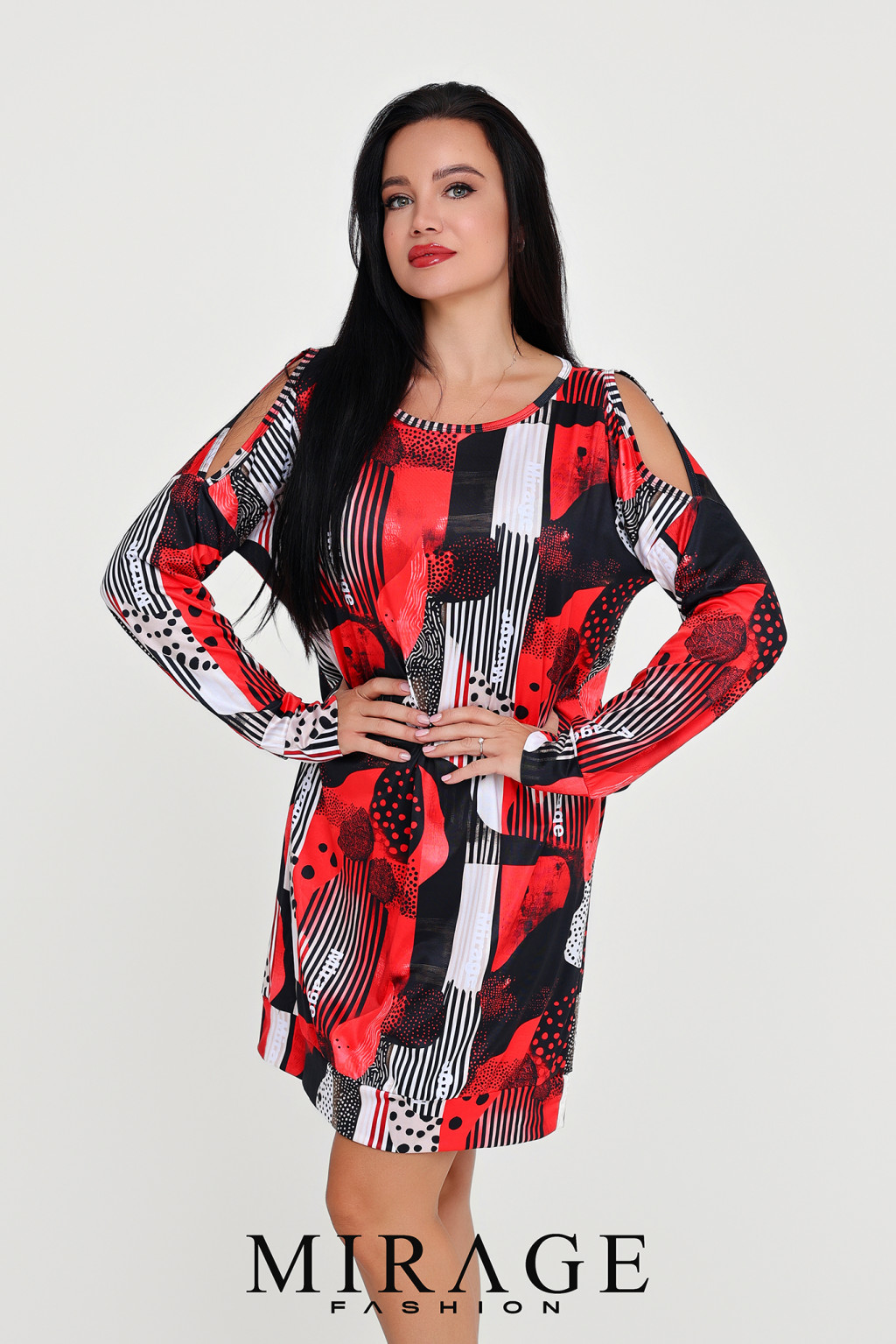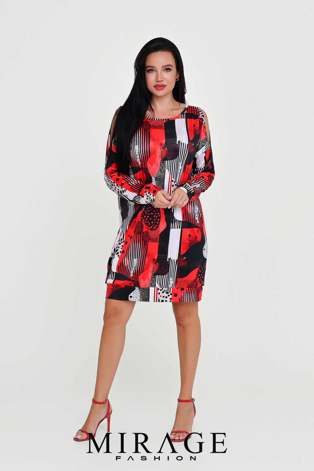 Mirage mintás mikró anyagból készült, vállán nyitott, hosszú ujjú ruha.