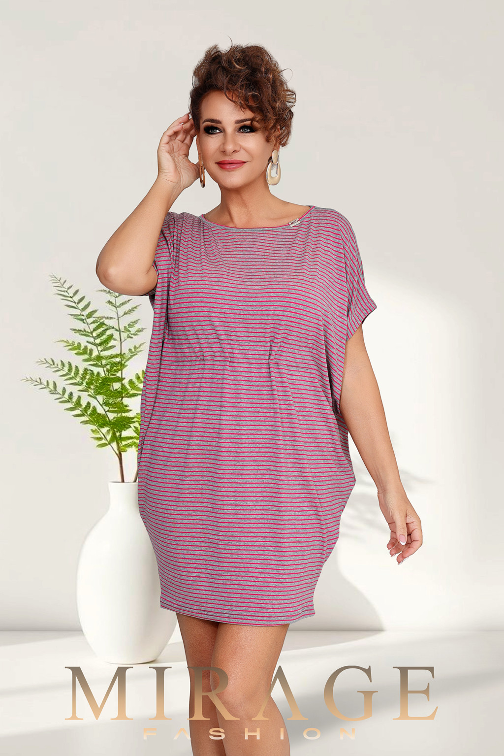Mirage Levendula mell alatt húzókás tunika, szürke pink csíkos