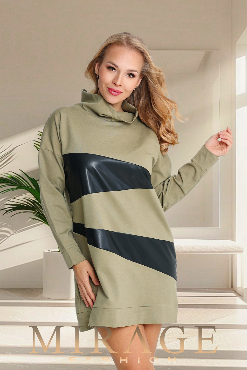 Mirage Lilla bőrbetétes pulóver, világos kheki