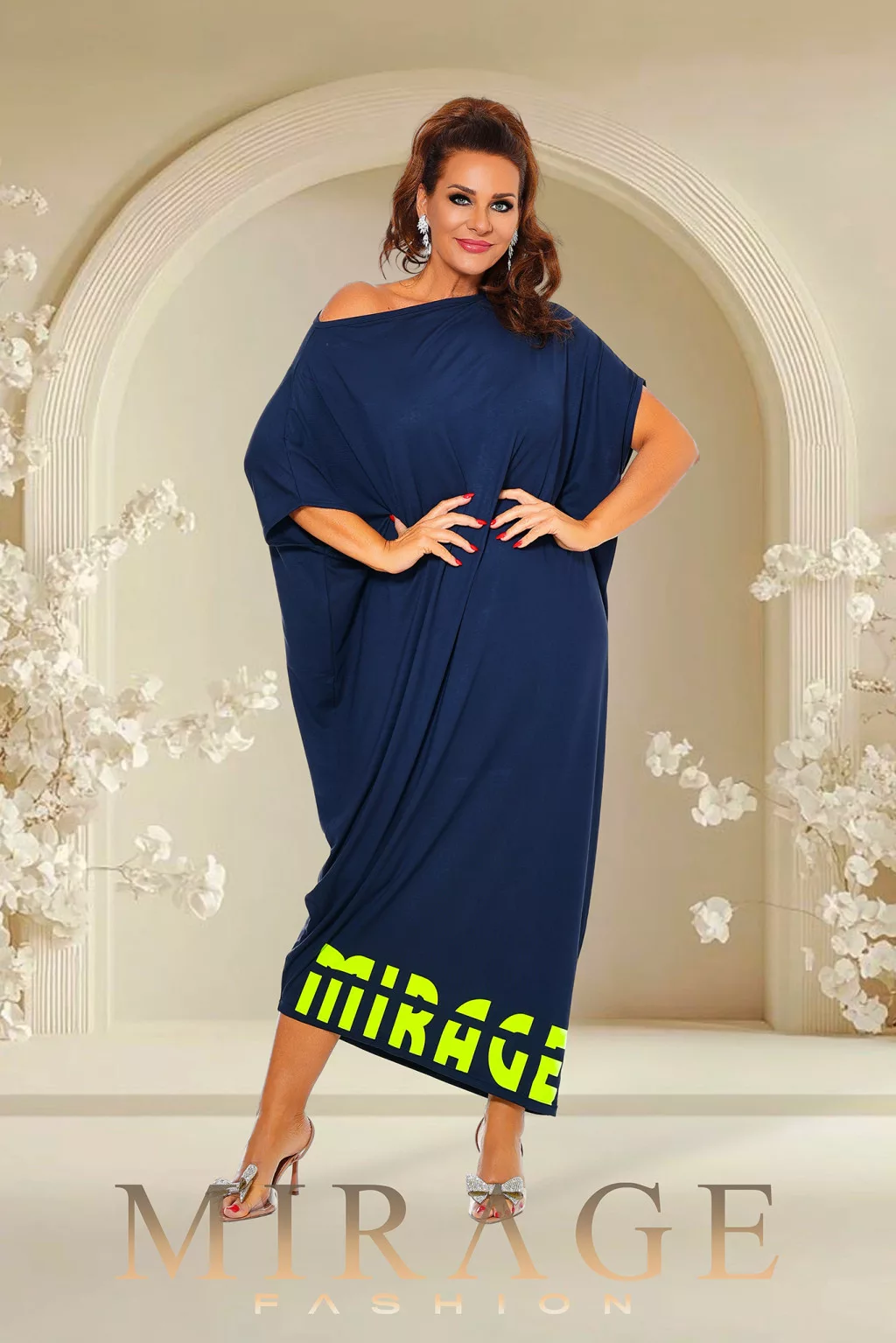 Pamut anyagból készült, alján nyomatos, laza, bő maxiruha.
