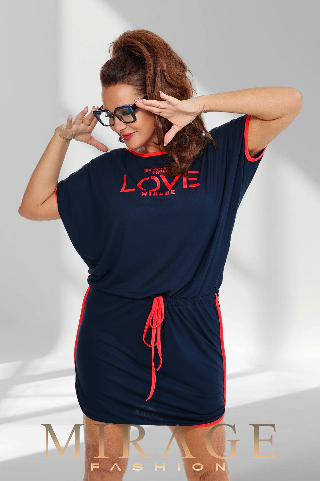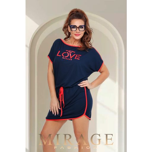 Pamut viszkózból készült, paszpólos, gumis derekú, rövid ujjú ruha.