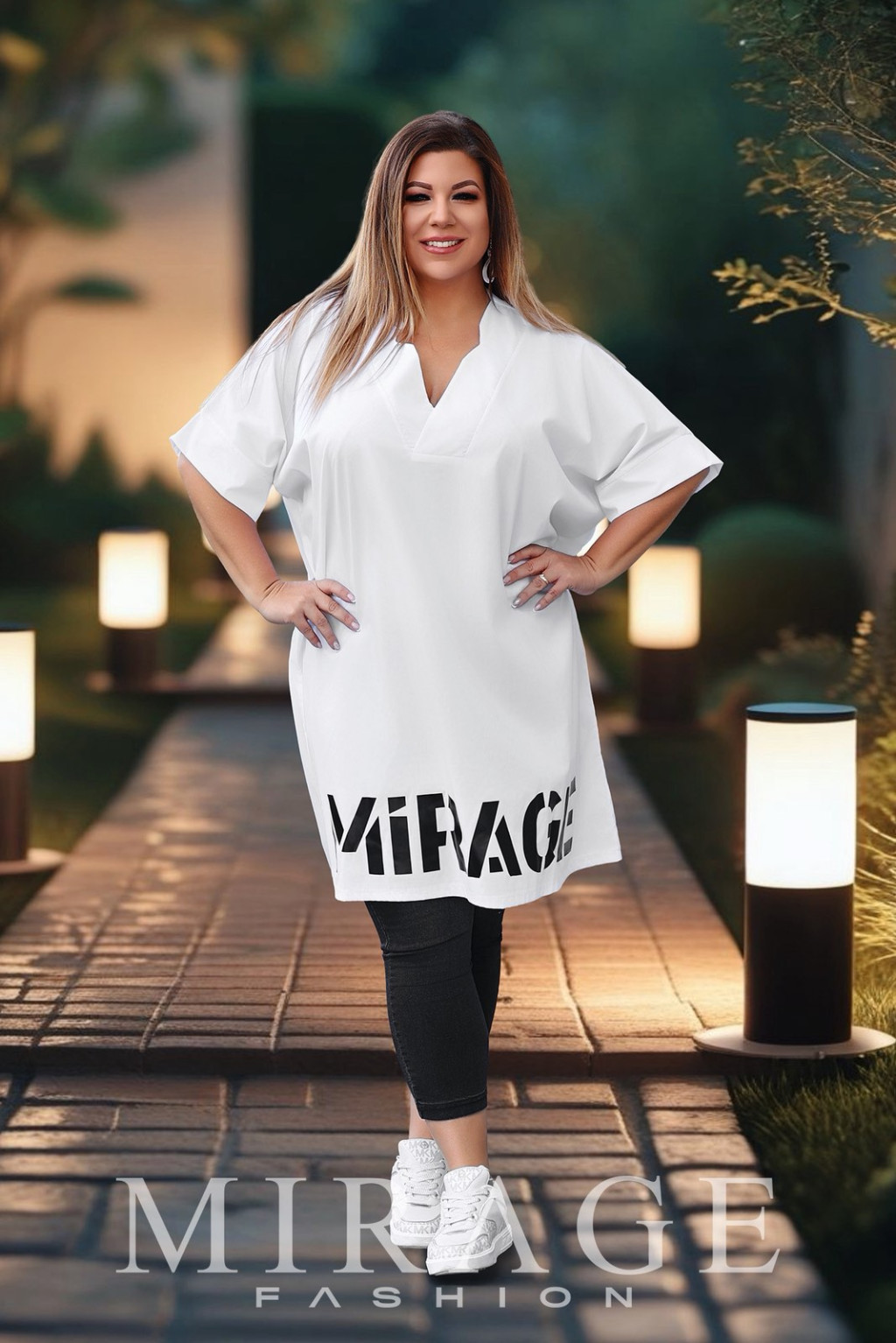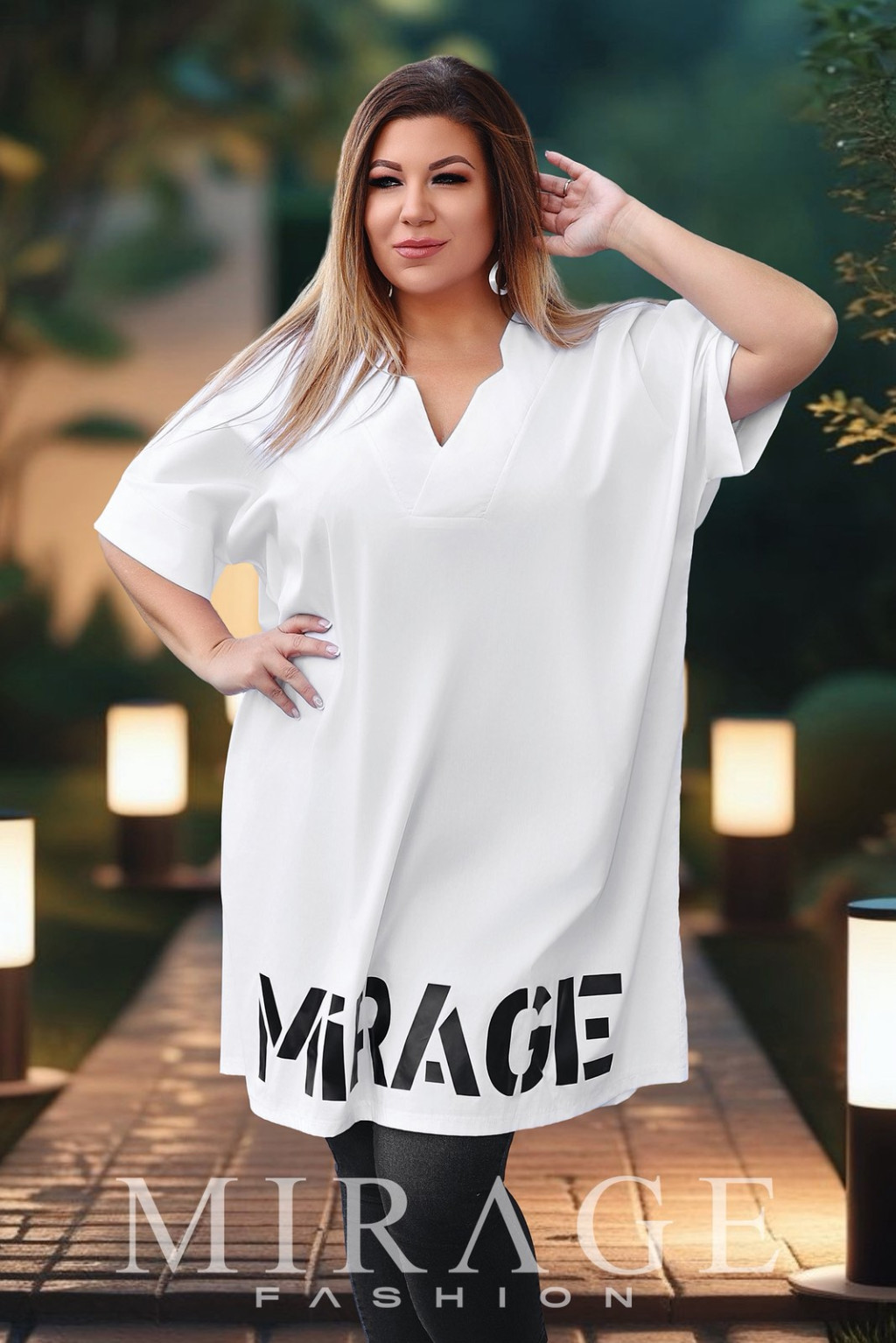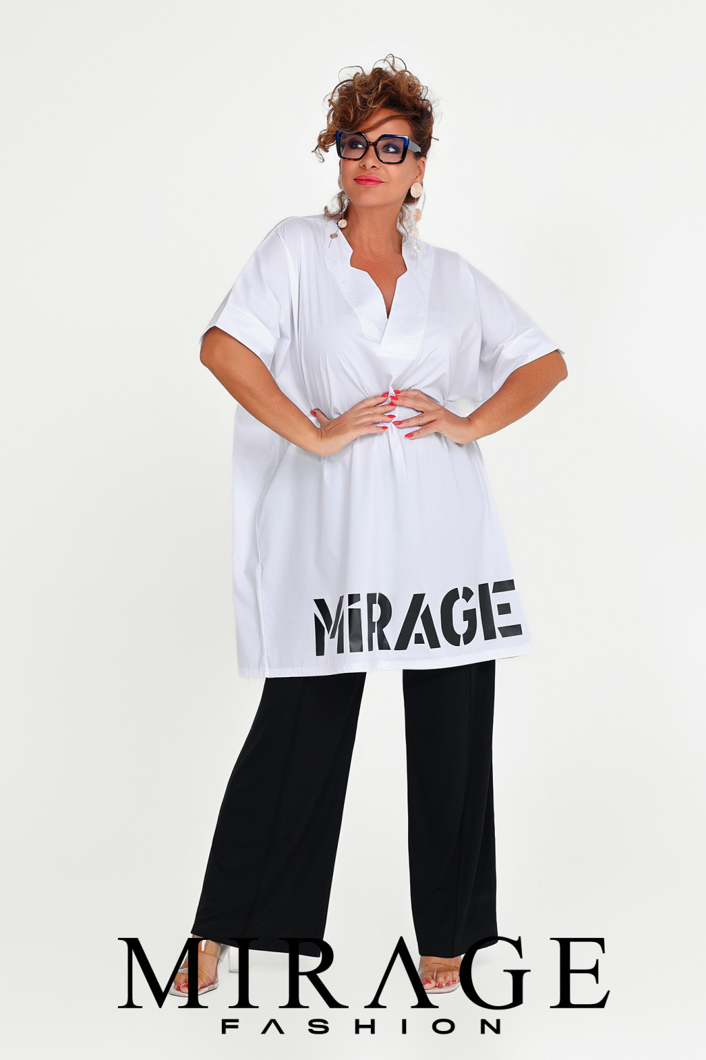 Puplin (ing) anyagból készült, V kivágású, egyenes fazonú, lezser ingtunika.