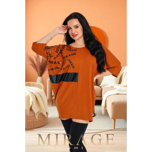 Vastag pamut anyagból készült, műbőr betétes, printelt nyomatos, bő tunika.