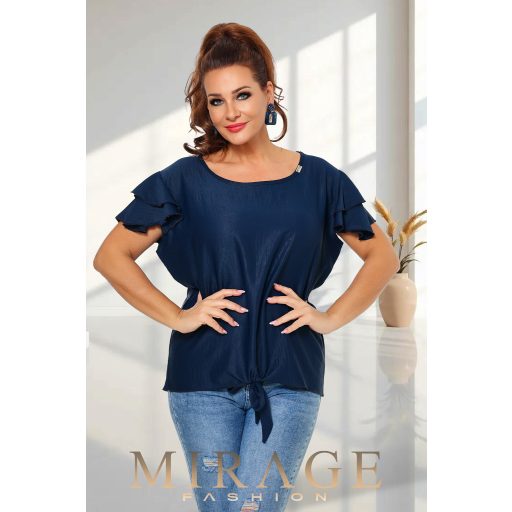 Silky szatén anyagból készült, alul megkötős, kerek nyakú, lepke ujjú felső.