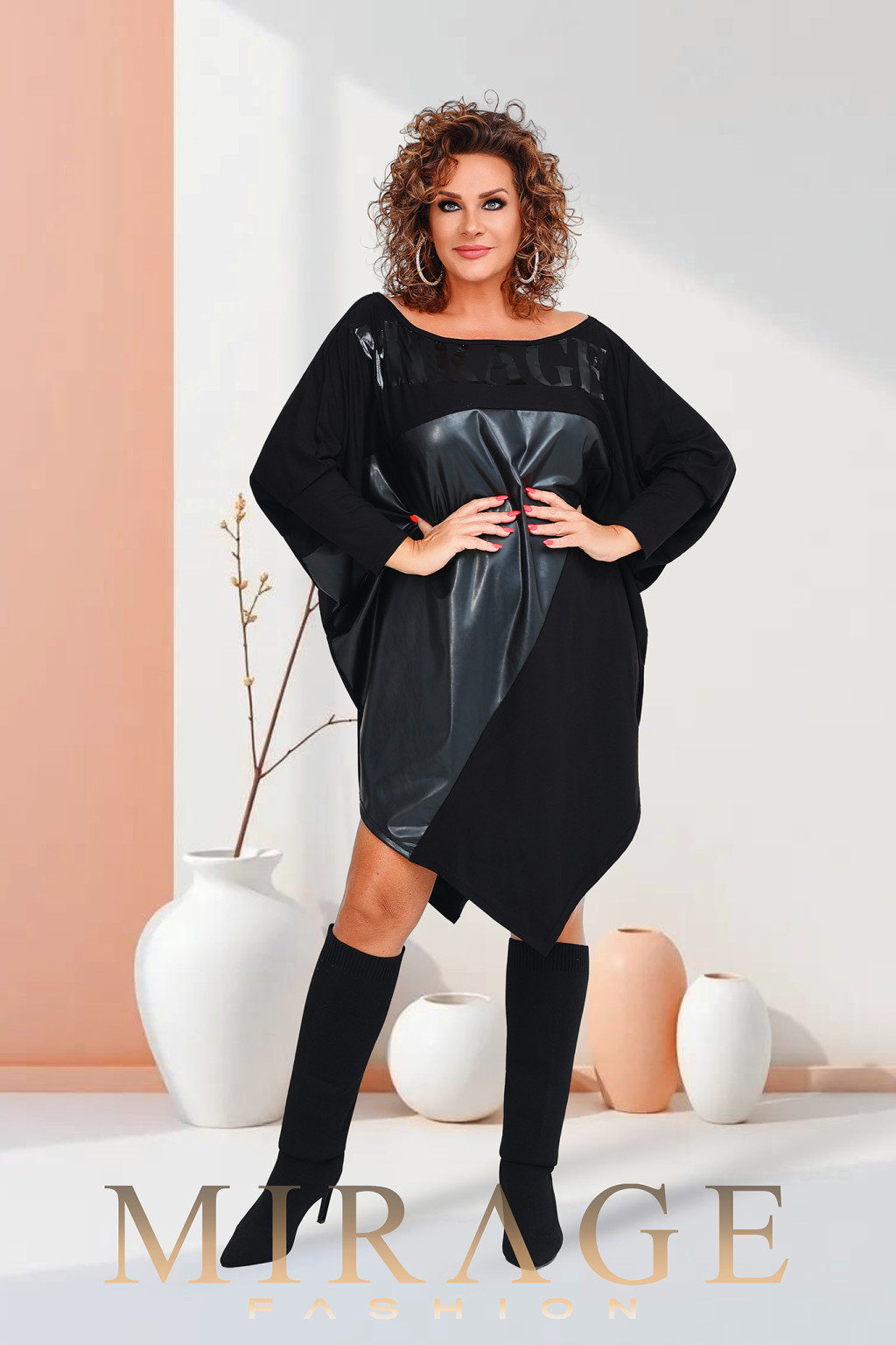 Pamut viszkózból készült, bőrbetétes, laza, bő tunika.