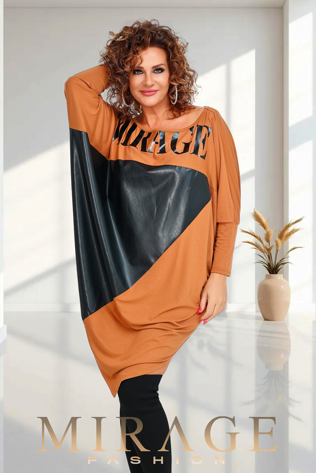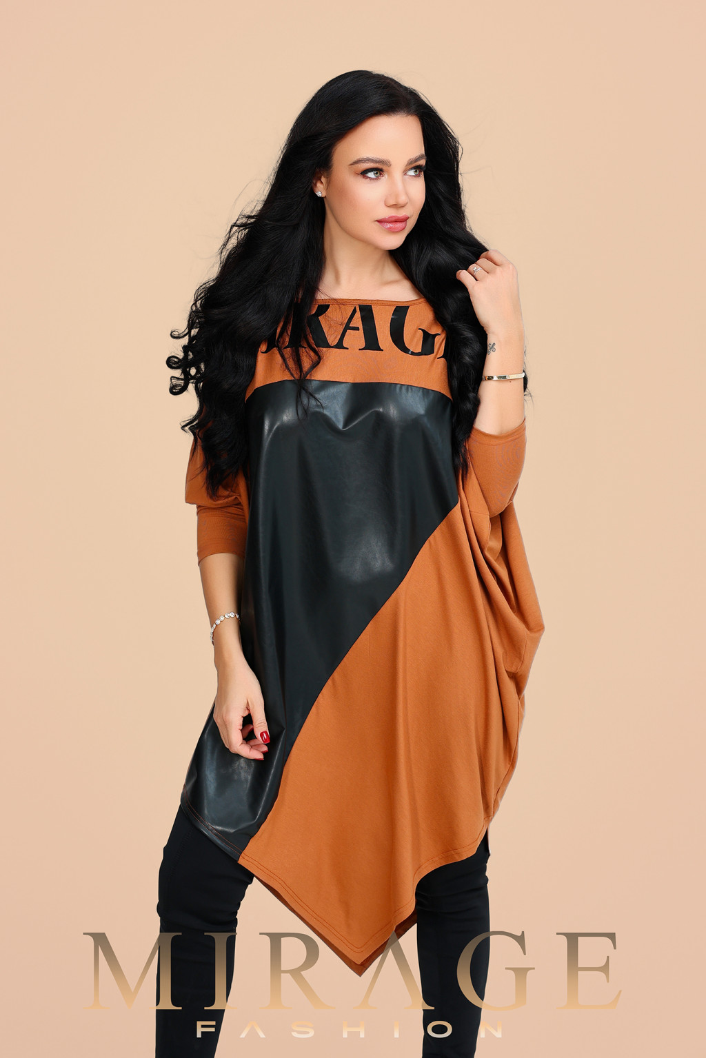 Mirage Nefertiti bőrbetétes tunika, konyak