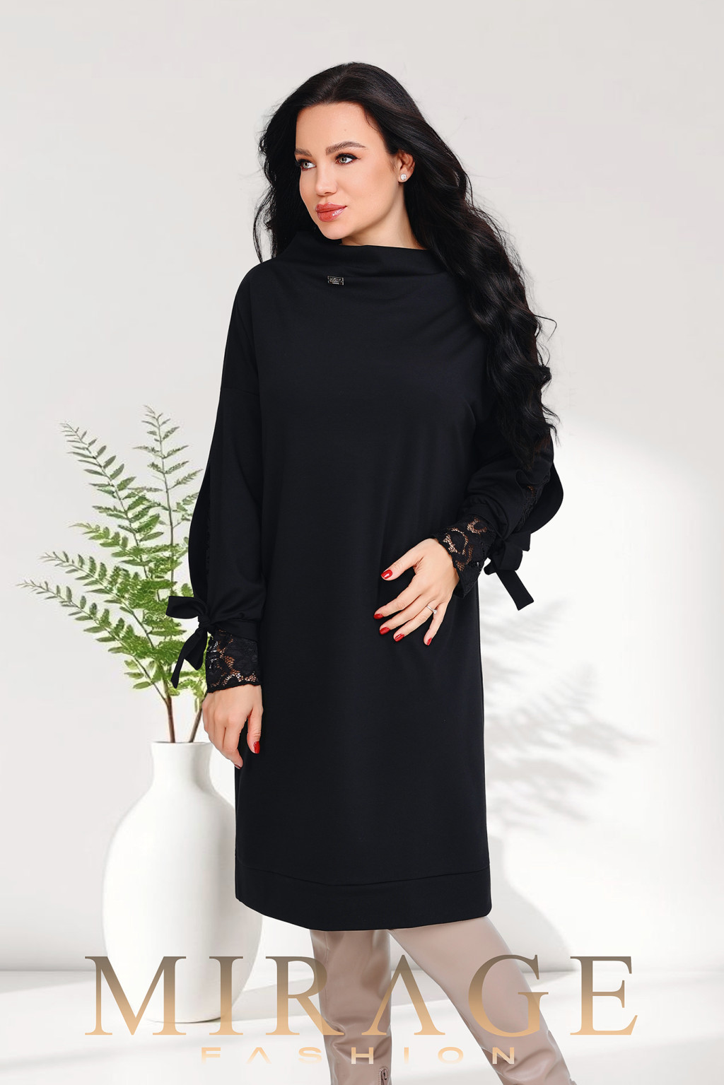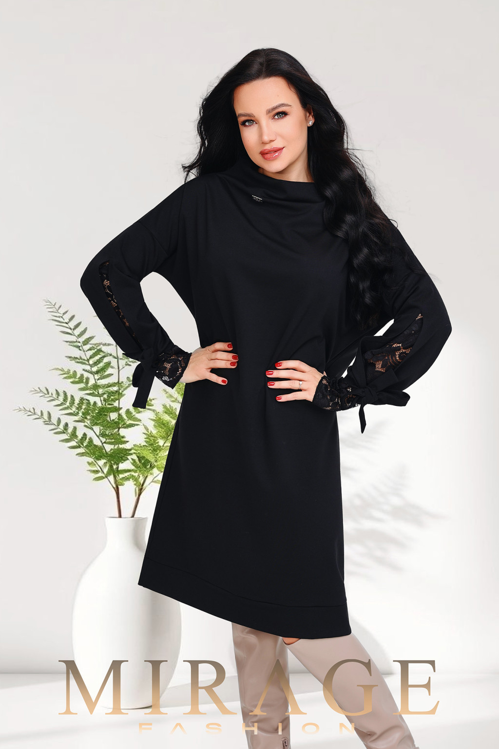 Kámzsa nyakú, ujján csipkebetés és szalagos pulóver.