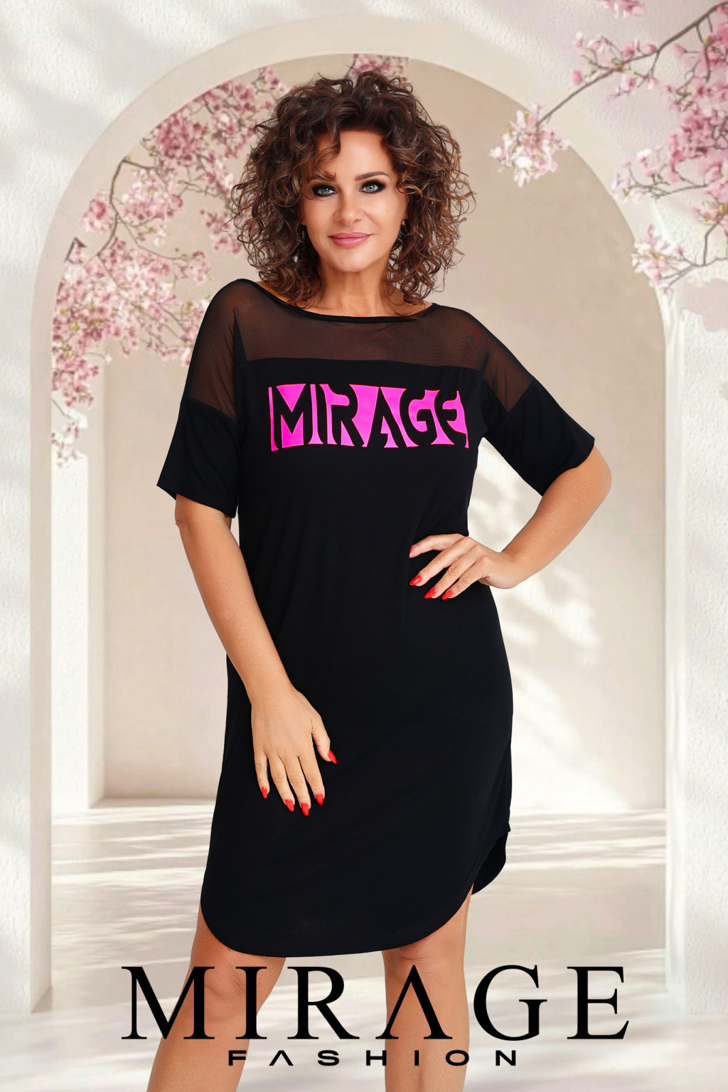 Pamut viszkózból készült neccbetétes, mellnél Mirage nyomatos ruha.
