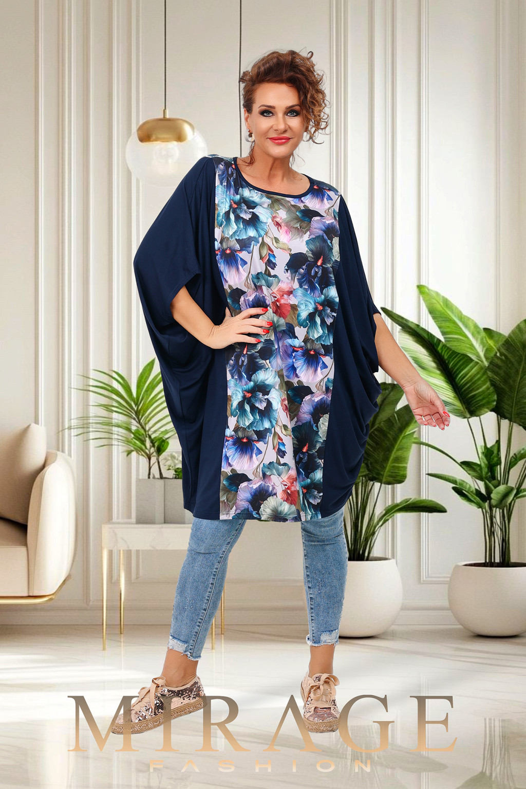 Mirage Piedro elől-hátul mintás tunika, virág mintás