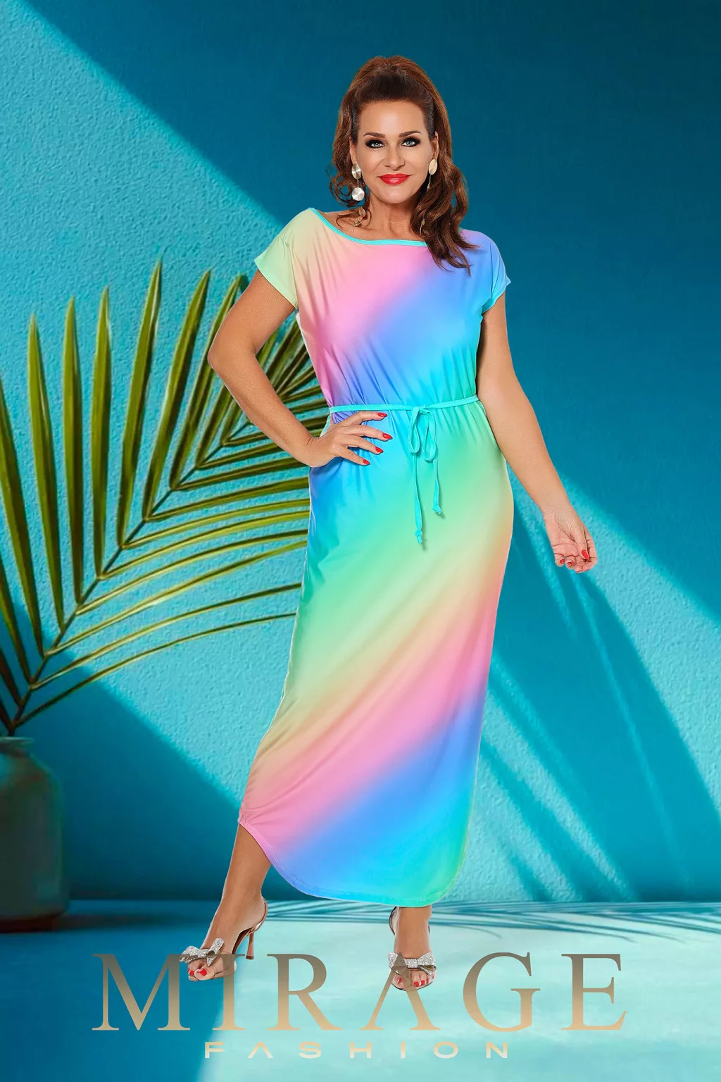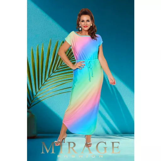 Elől mintás mikró, hátul egyszín pamut viszkózból készült, öves maxiruha.