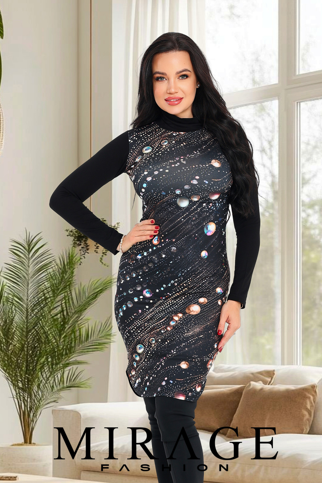 Garbós nyakú, hosszú ujjú, passzos ruha.