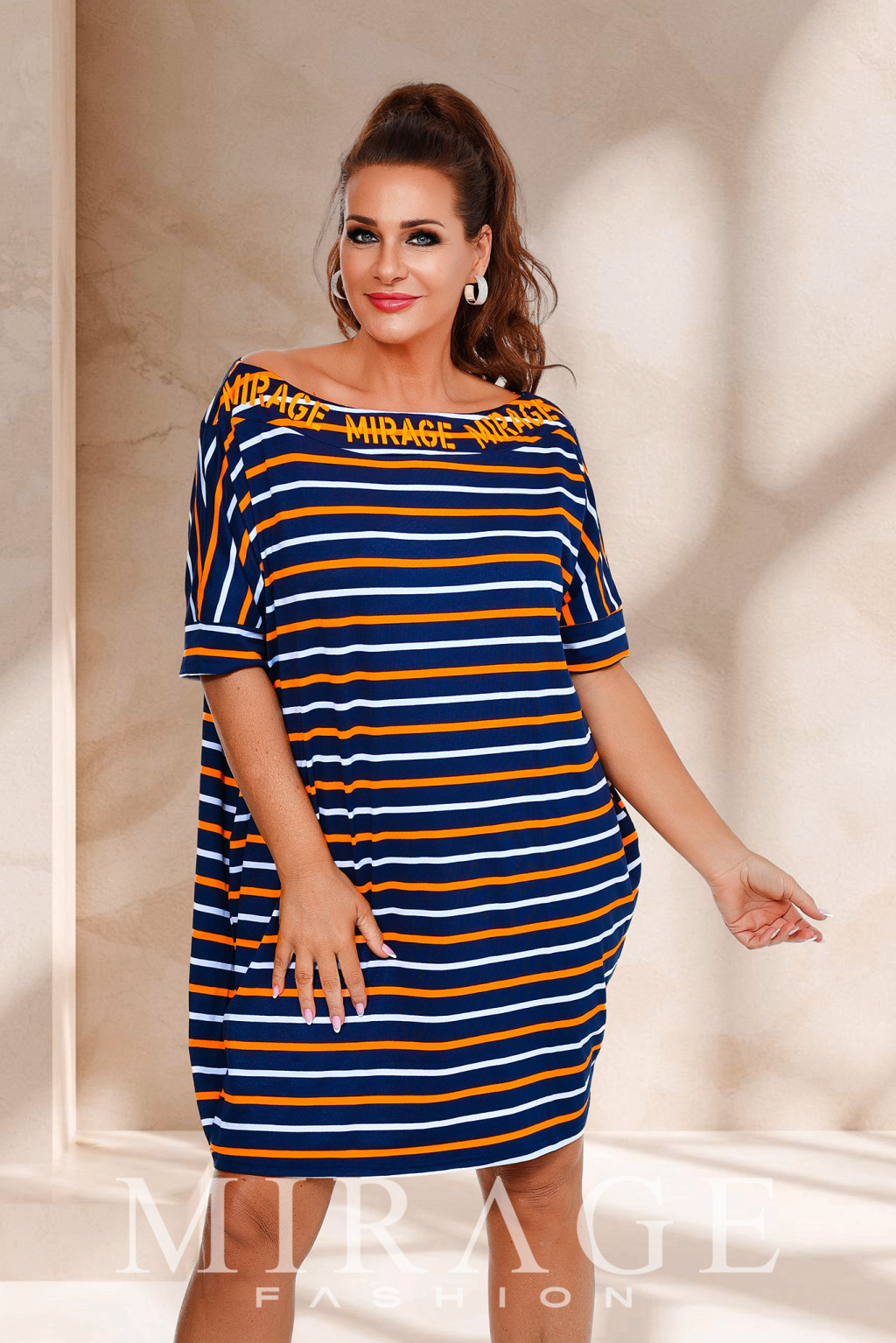 Mirage Samantha csónaknyakú ruha, sötétkék csíkos