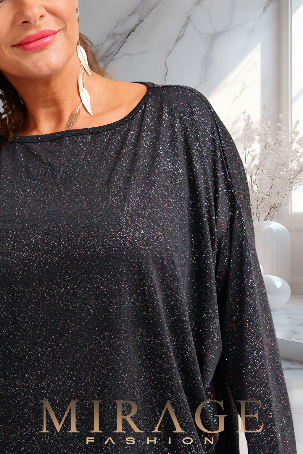 Csillogós anyagból készült elől rövidebb, hátul hosszabb fazonú, laza, bő alkalmi tunika.
