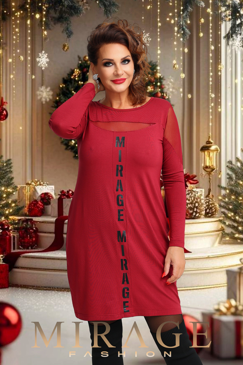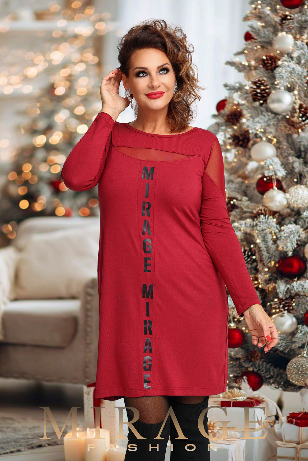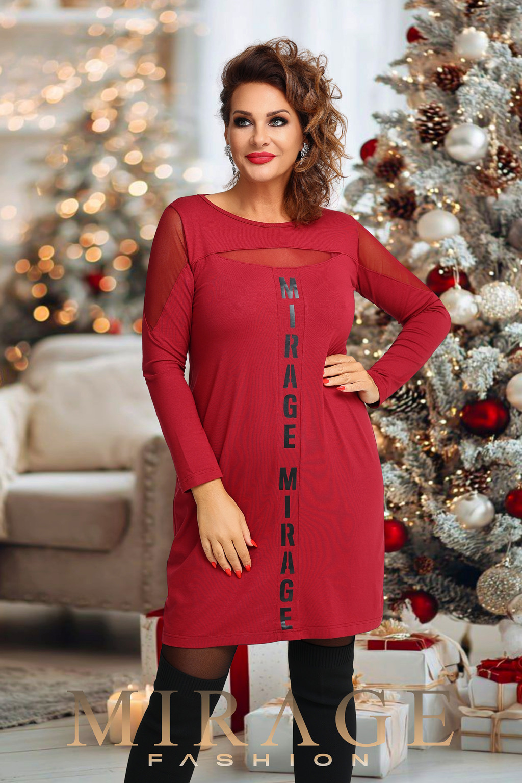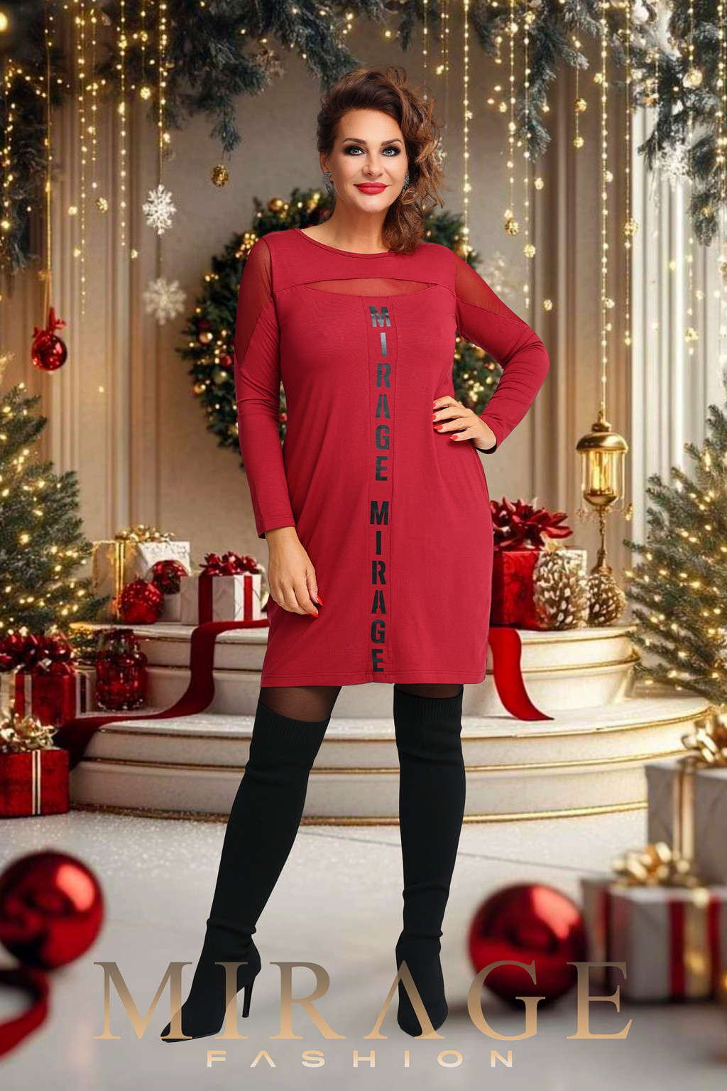 Kerek nyakú, hosszú ujjú, neccbetétes ruha.