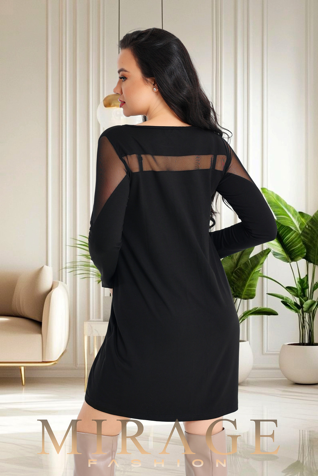 Kerek nyakú, hosszú ujjú, neccbetétes ruha.