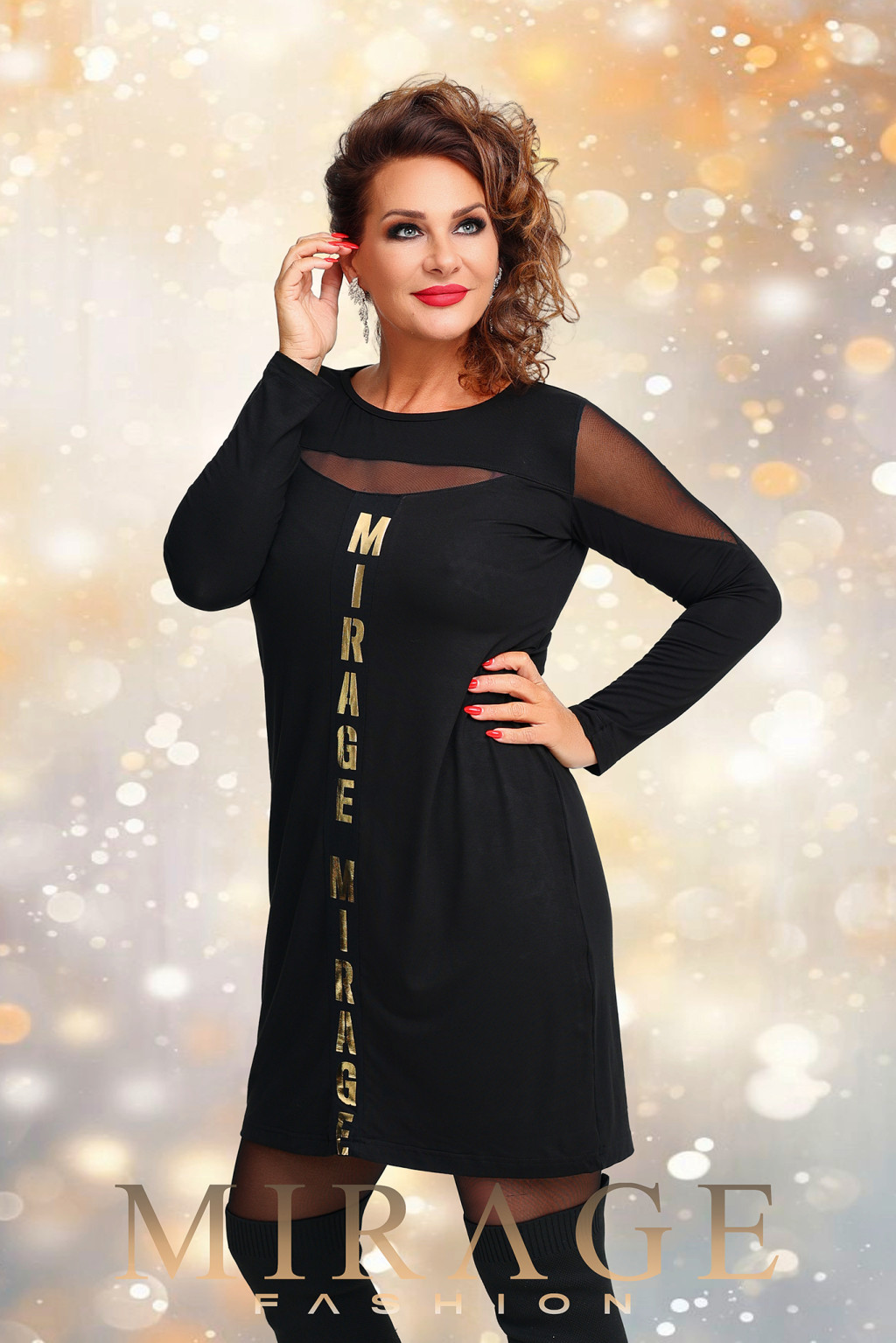 Kerek nyakú, hosszú ujjú, neccbetétes ruha.