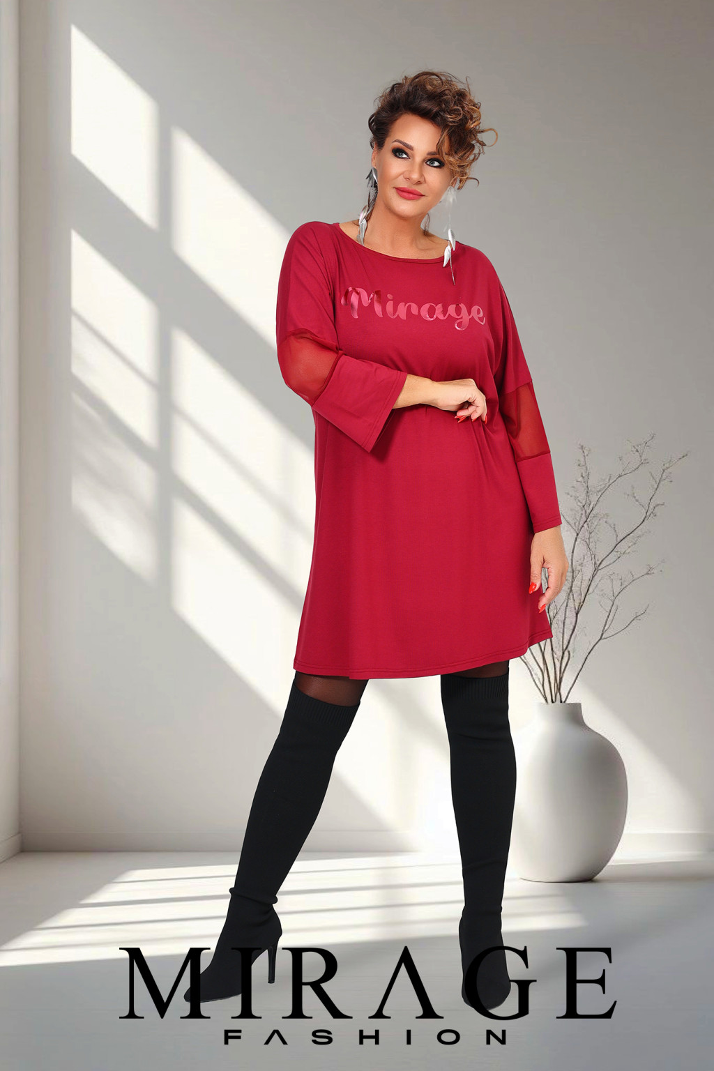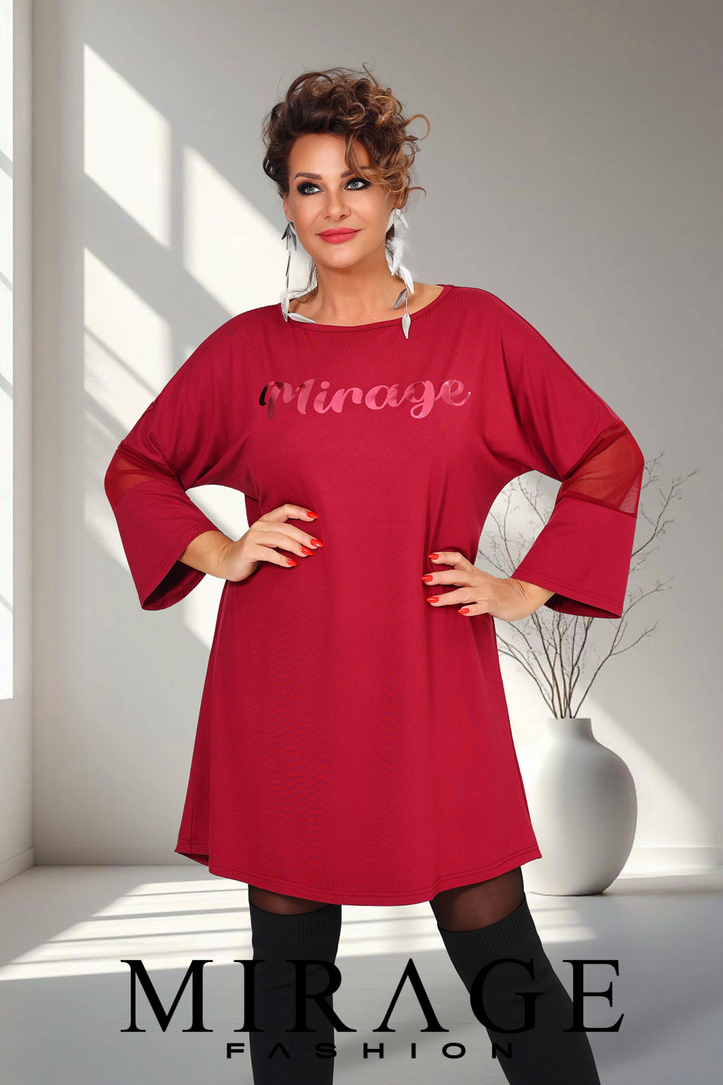 Pamut viszkózból készült, ujjain neccbetétes, tölcsér ujjú, mellnél Mirage feliratos ruha.