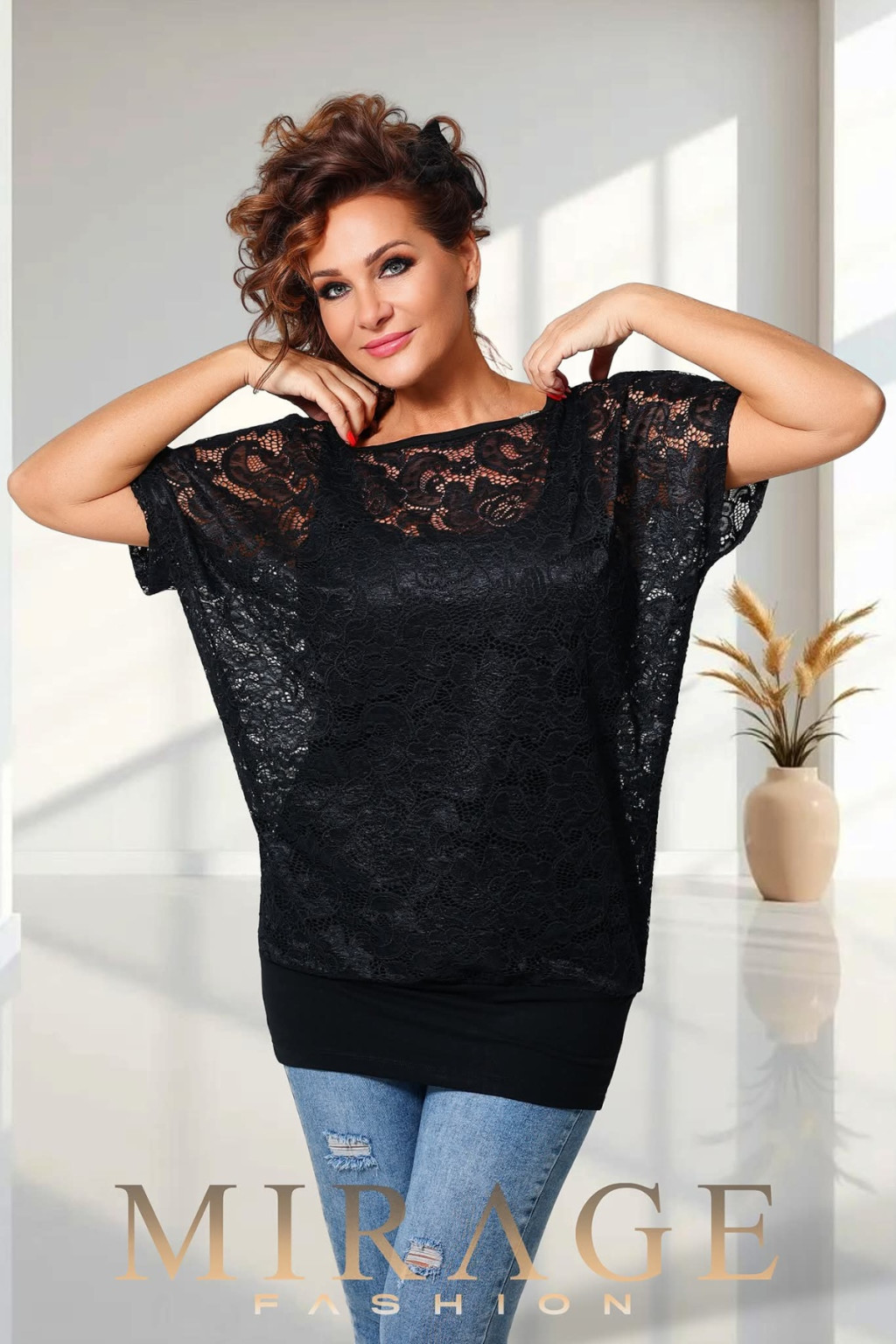 Mirage Ulena csipkés felső, fekete
