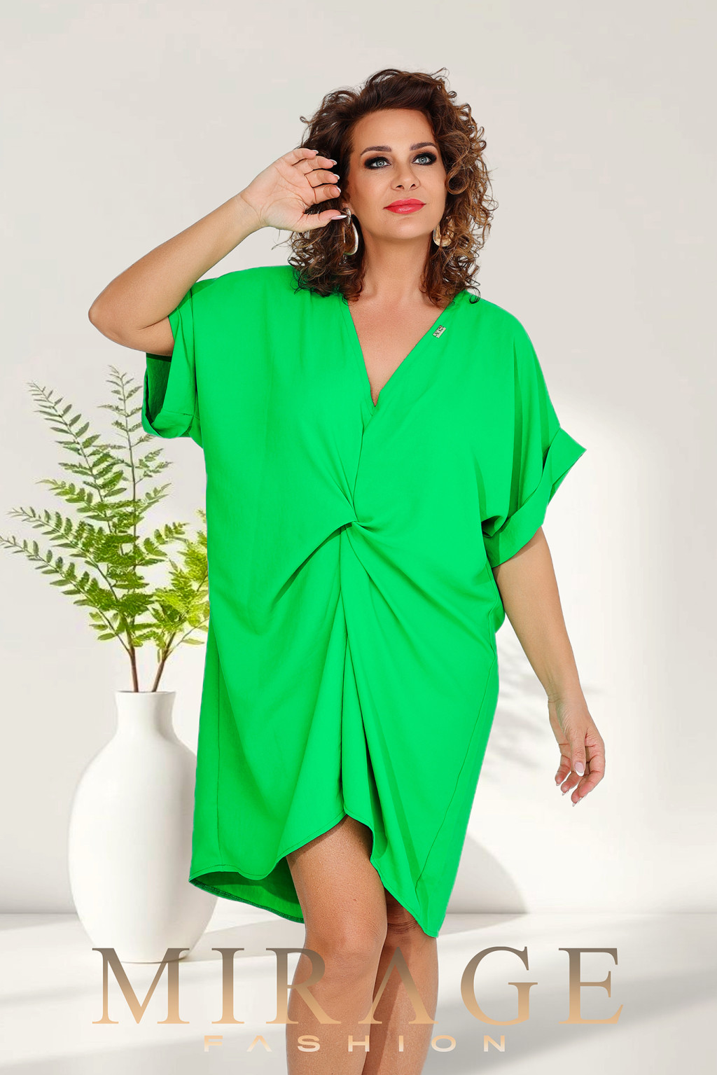 Silky szatén anyagból készült, elől csavart fazonú, bő ruha és vagy tunika.