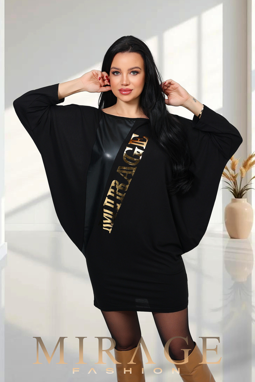 Pamut viszkózból készült denevér ujjú, bőrbetétes tunika.