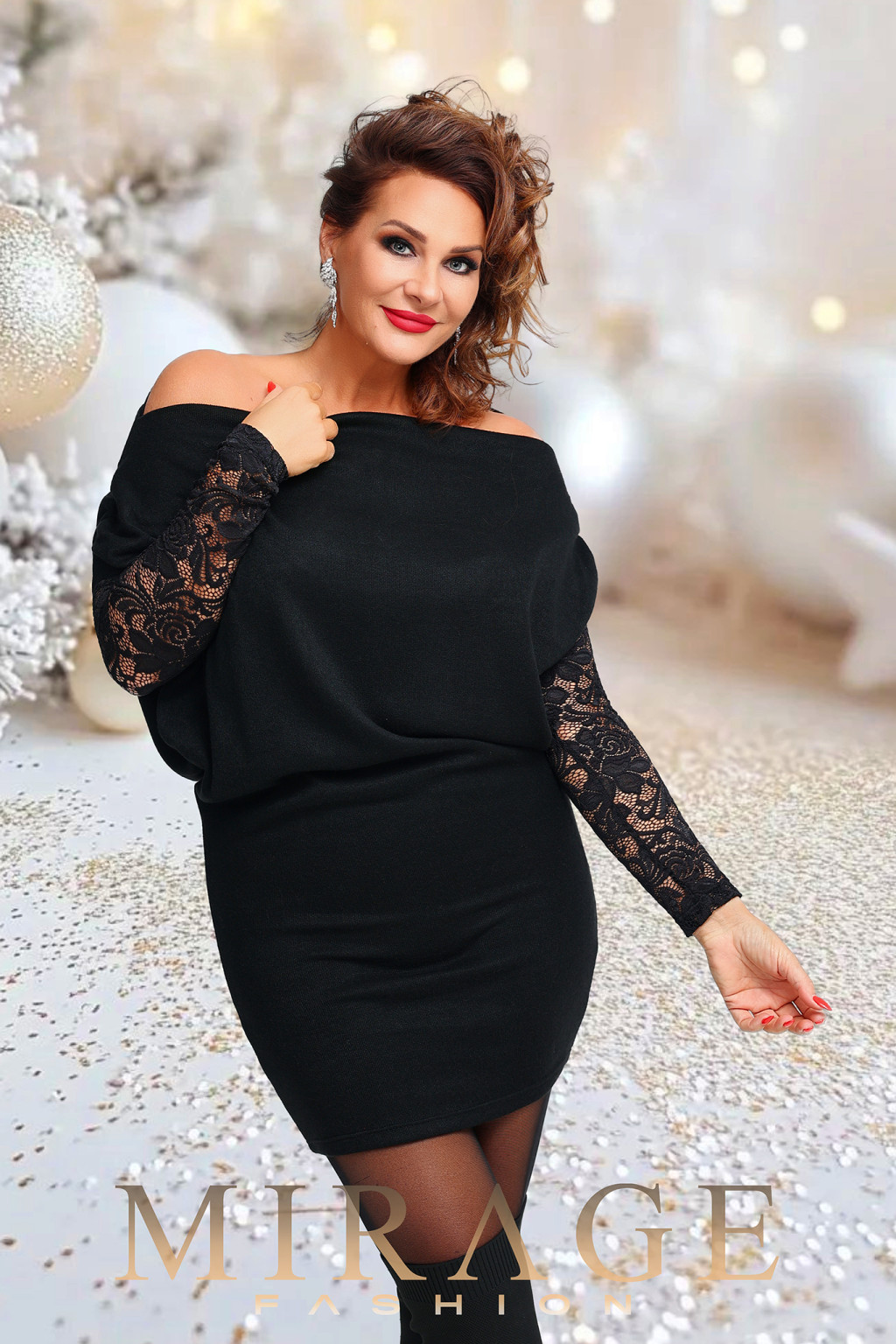 Mirage Zakopane vastag kötött csipke ujjas ruha, fekete