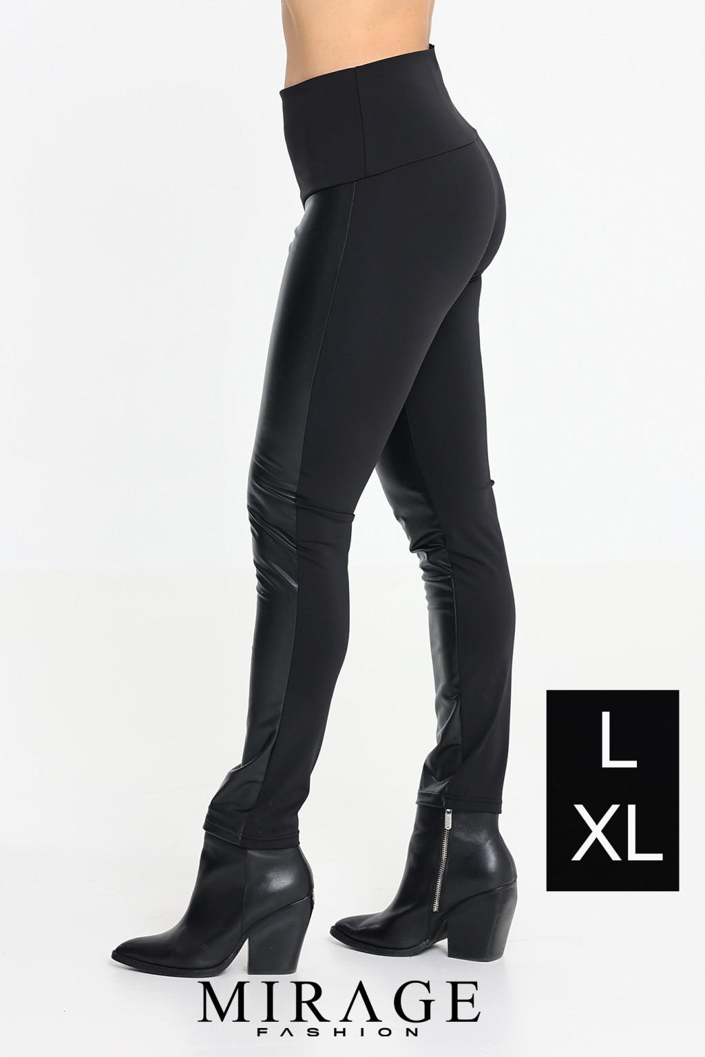 Mirage extra magas derekú bőrbetétes leggings, fekete