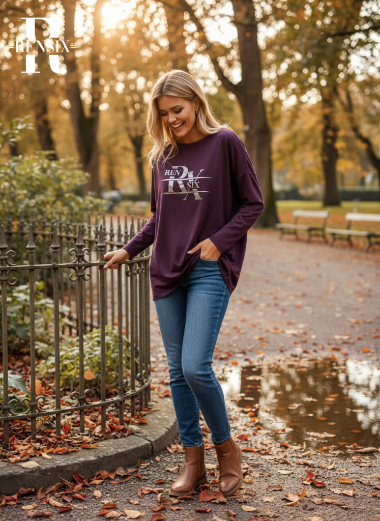 Viszkóz anyagból készült kerek nyakú, elől Rensix nyomatos, bő tunika.